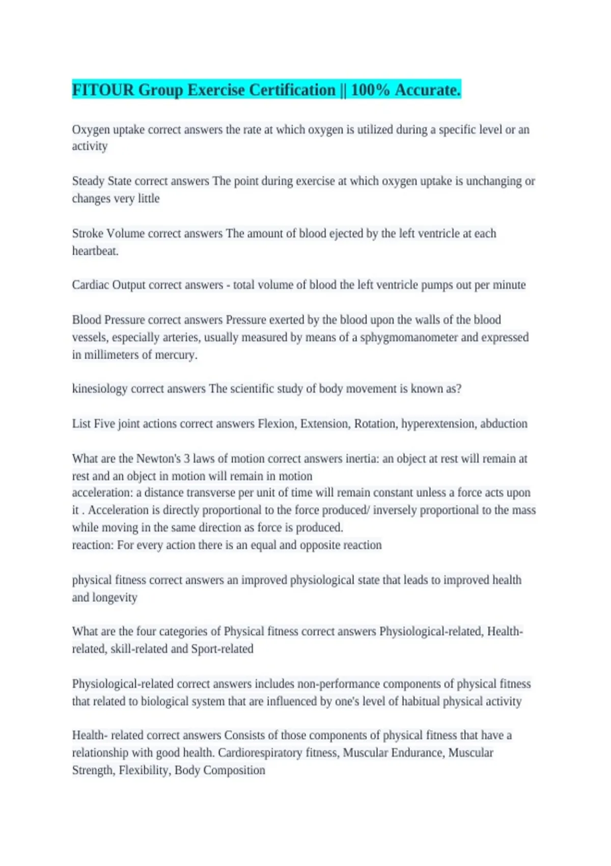 physical fitness correct answers an improved physiological state that leads to improved health