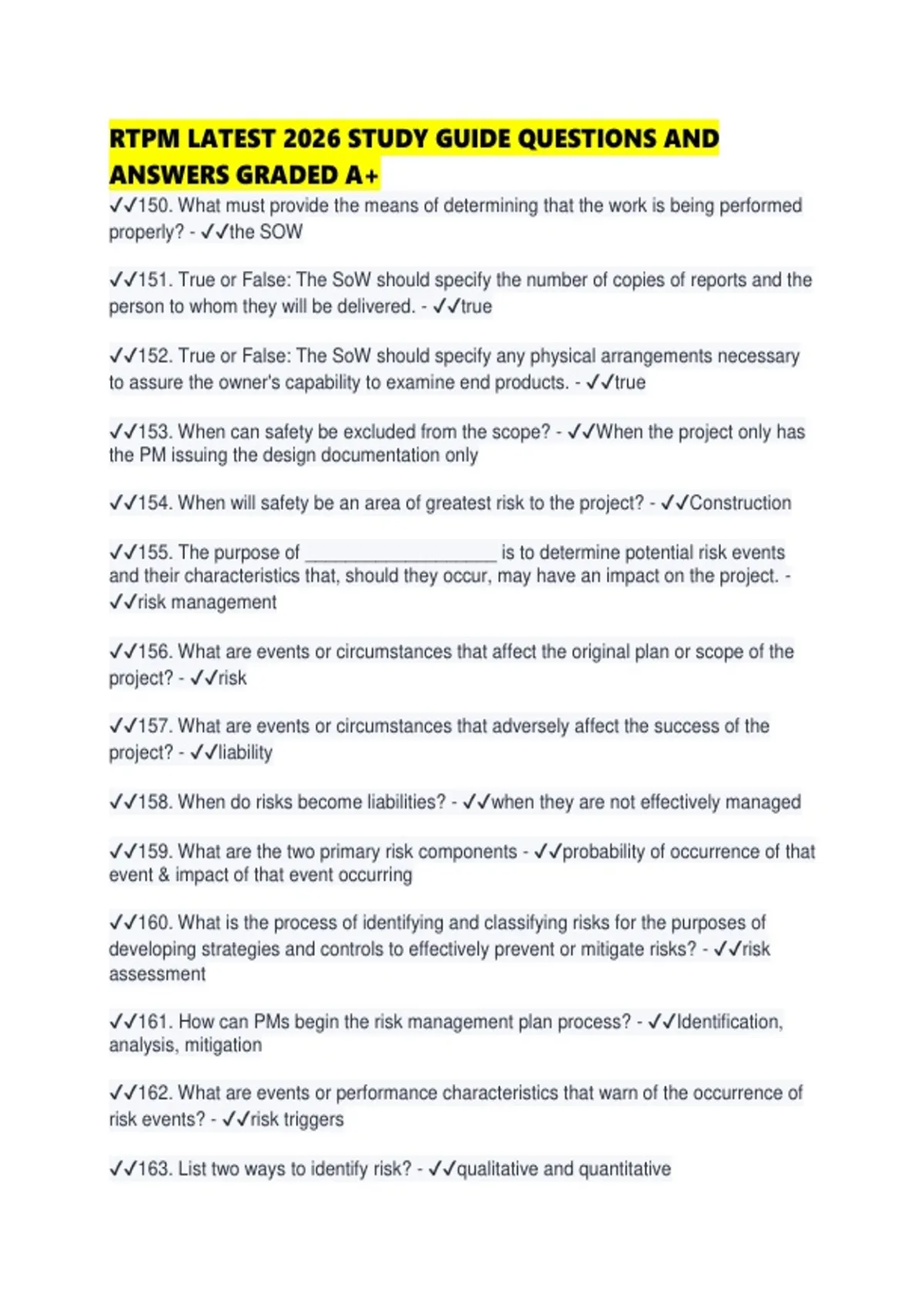 RTPM LATEST 2026 STUDY GUIDE QUESTIONS AND ANSWERS GRADED A+