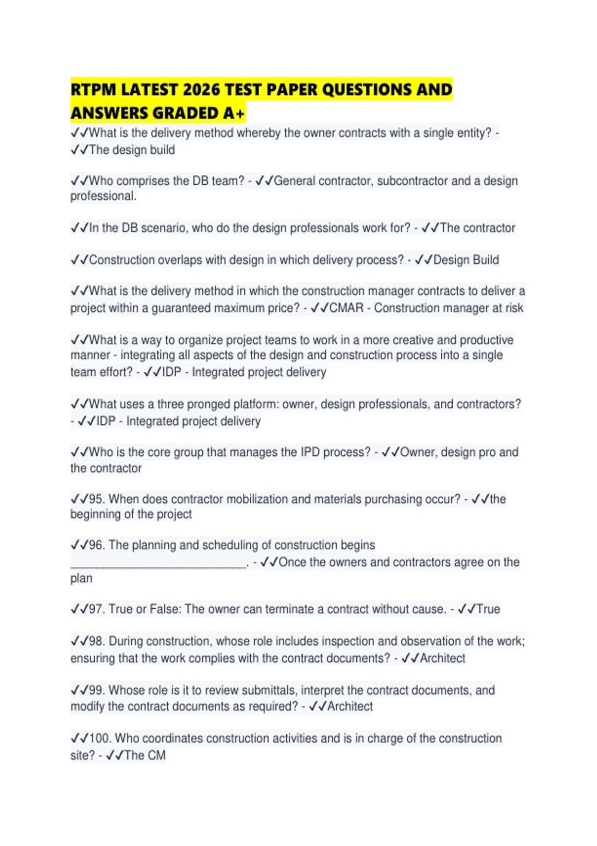 ✔✔97. True or False: The owner can terminate a contract without cause. - ✔✔True