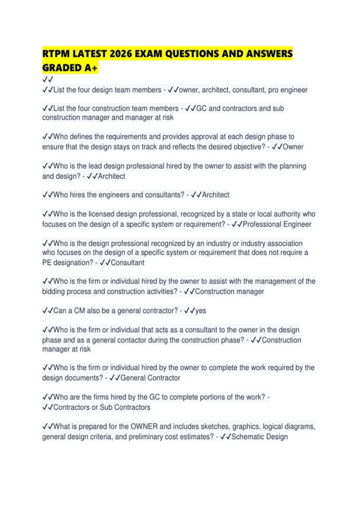 RTPM LATEST 2026 EXAM QUESTIONS AND ANSWERS GRADED A+