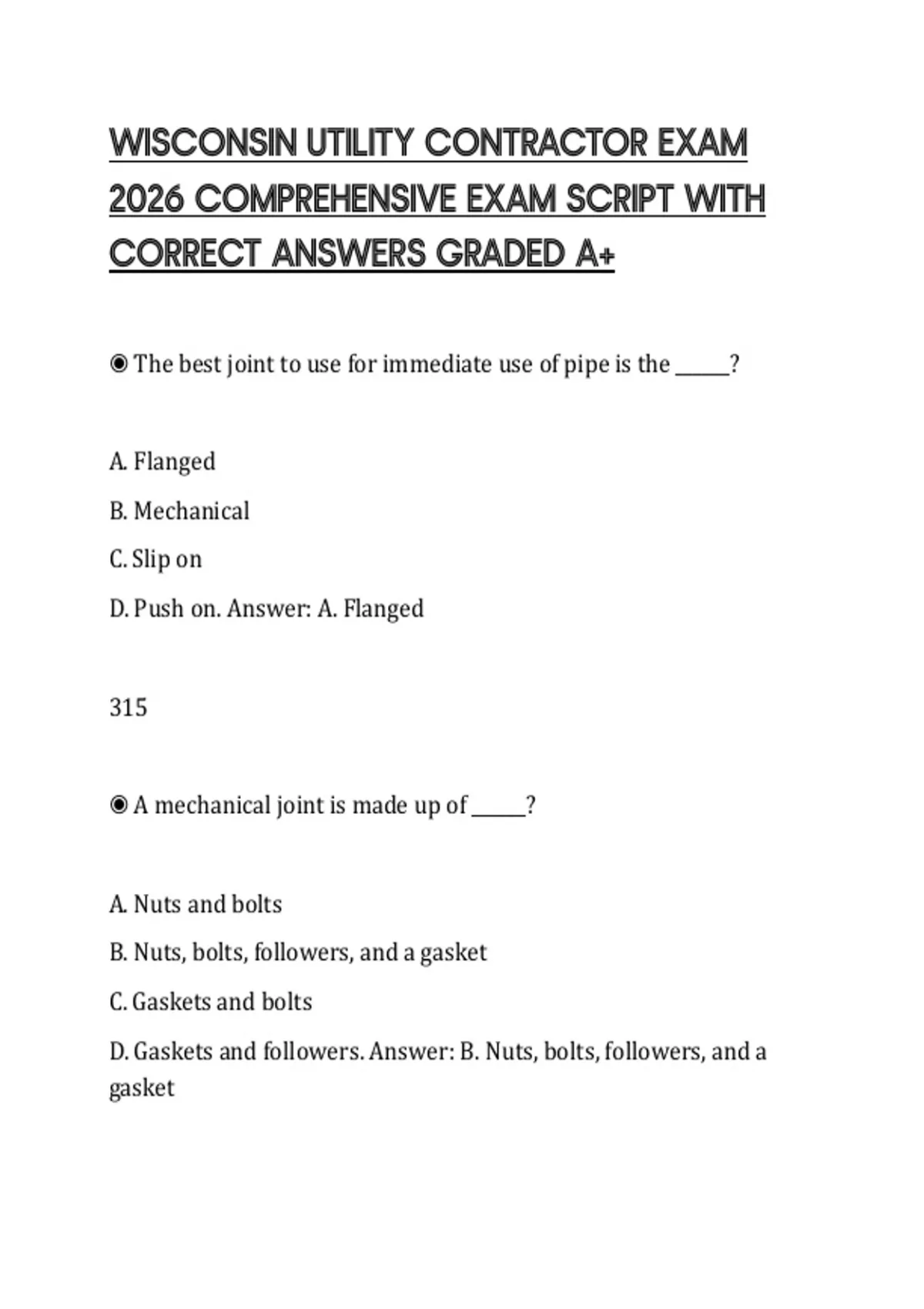 WISCONSIN UTILITY CONTRACTOR EXAM 2026 COMPREHENSIVE EXAM SCRIPT WITH CORRECT ANSWERS GRADED A+