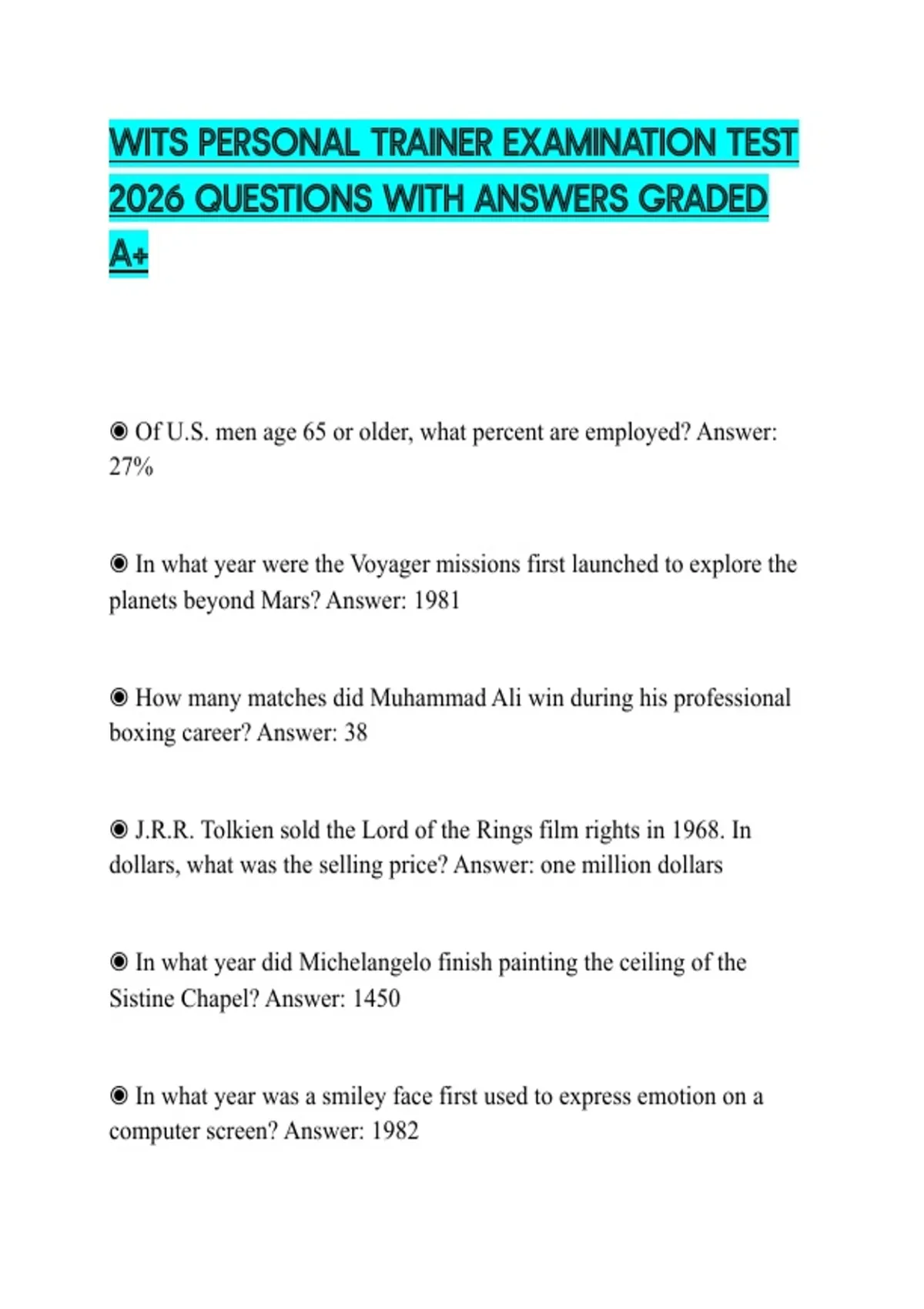 WITS PERSONAL TRAINER EXAMINATION TEST 2026 QUESTIONS WITH ANSWERS GRADED A+