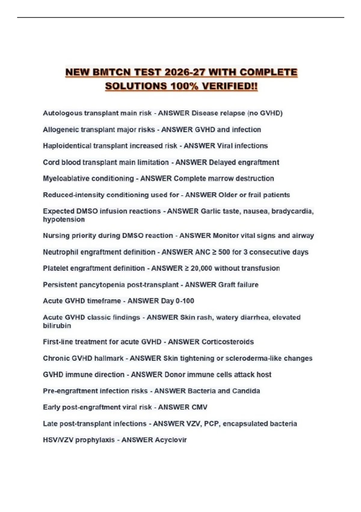 NEW BMTCN TEST 2026-27 WITH COMPLETE SOLUTIONS 100% VERIFIED!!...