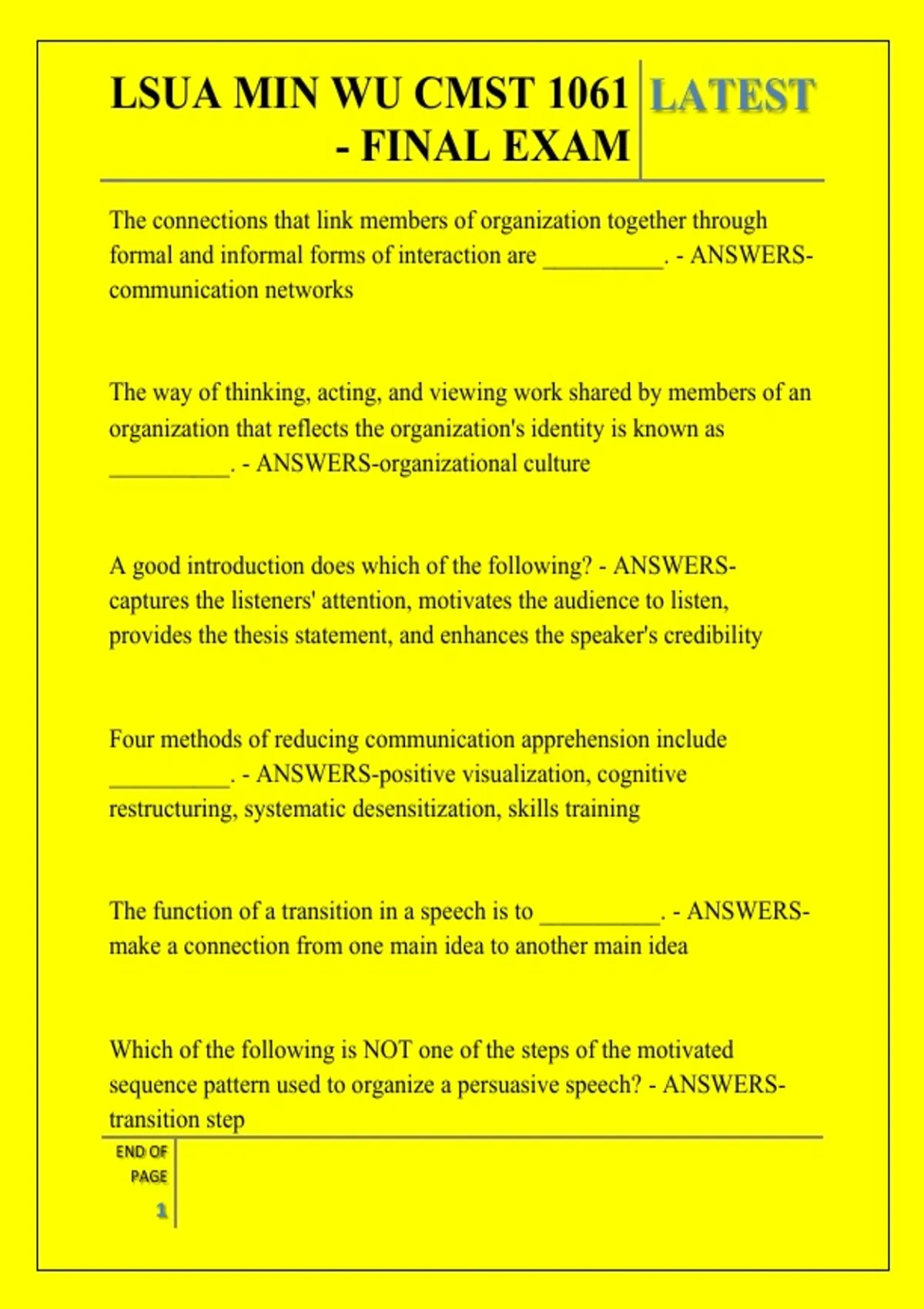 LSUA MIN WU CMST 1061 - FINAL EXAM QUESTIONS AND ANSWERS 2026