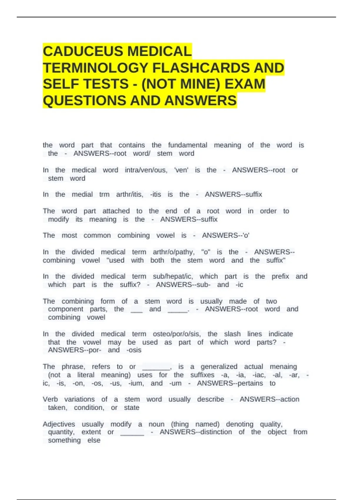 In 6gthe 6gmedial 6gtrm 6garthr/itis, 6g-itis 6gis 6gthe 6g- 6gANSWERS--suffix