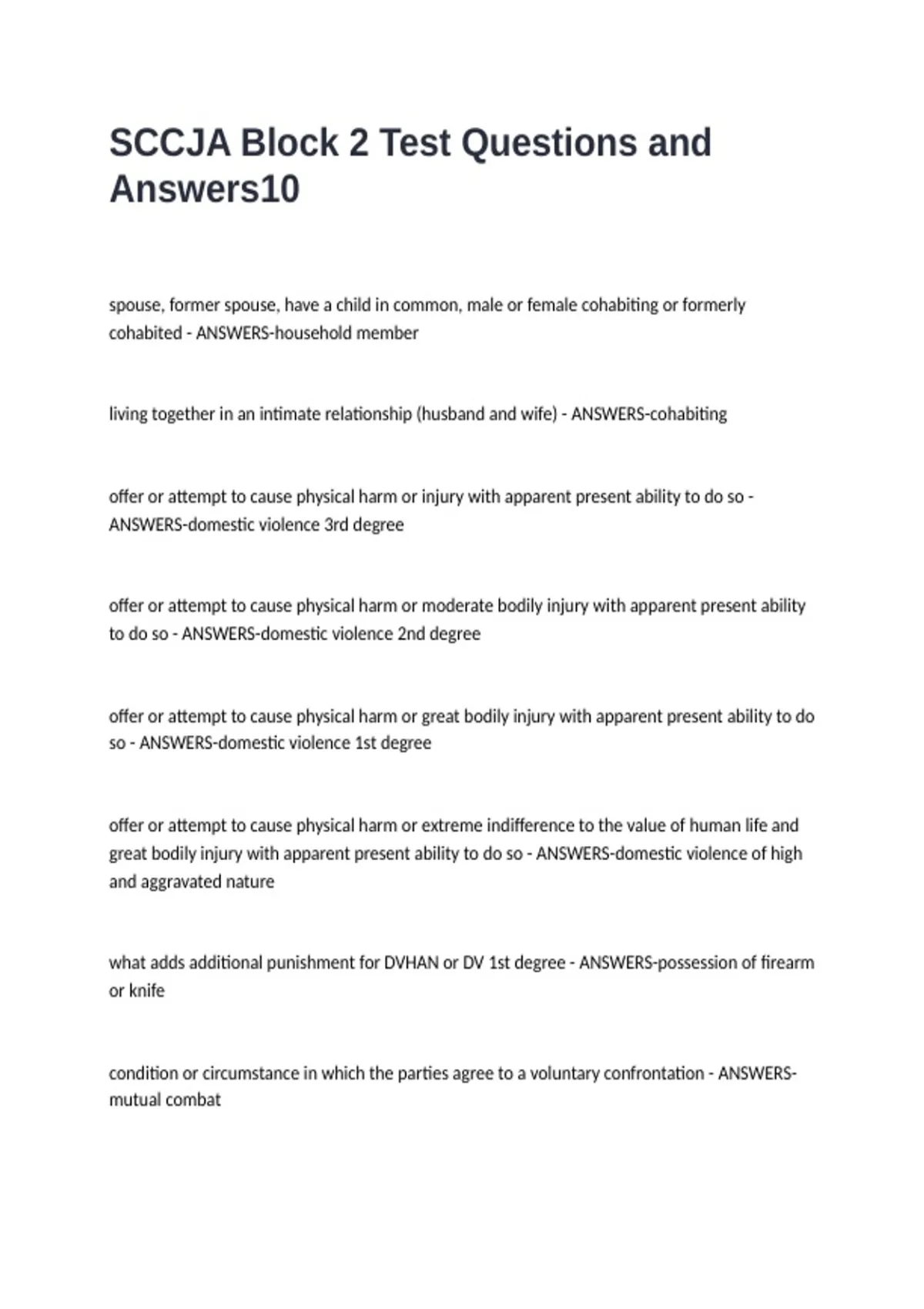 ANSWERS-domestic violence 3rd degree