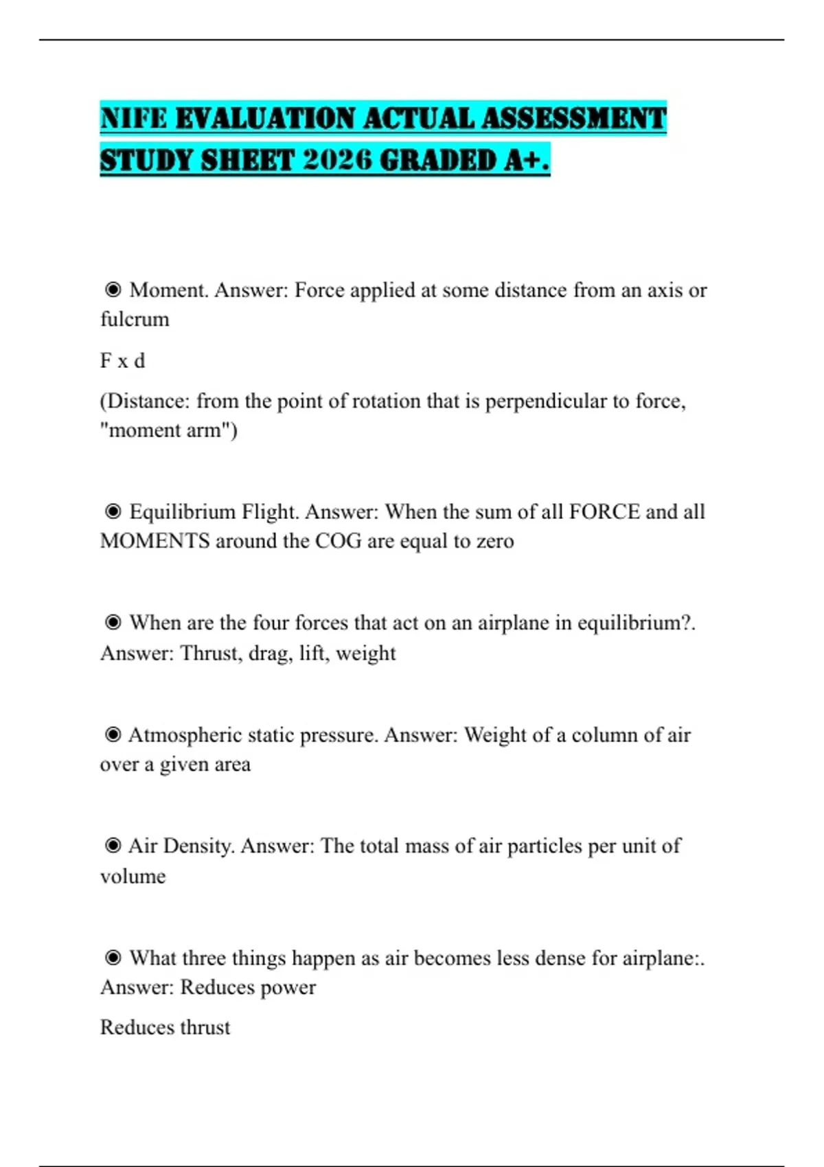 STUDY SHEET 2026 GRADED A+.