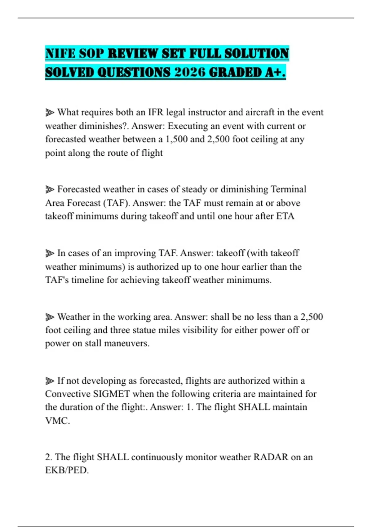 NIFE SOP REVIEW SET FULL SOLUTION SOLVED QUESTIONS 2026 GRADED A+.