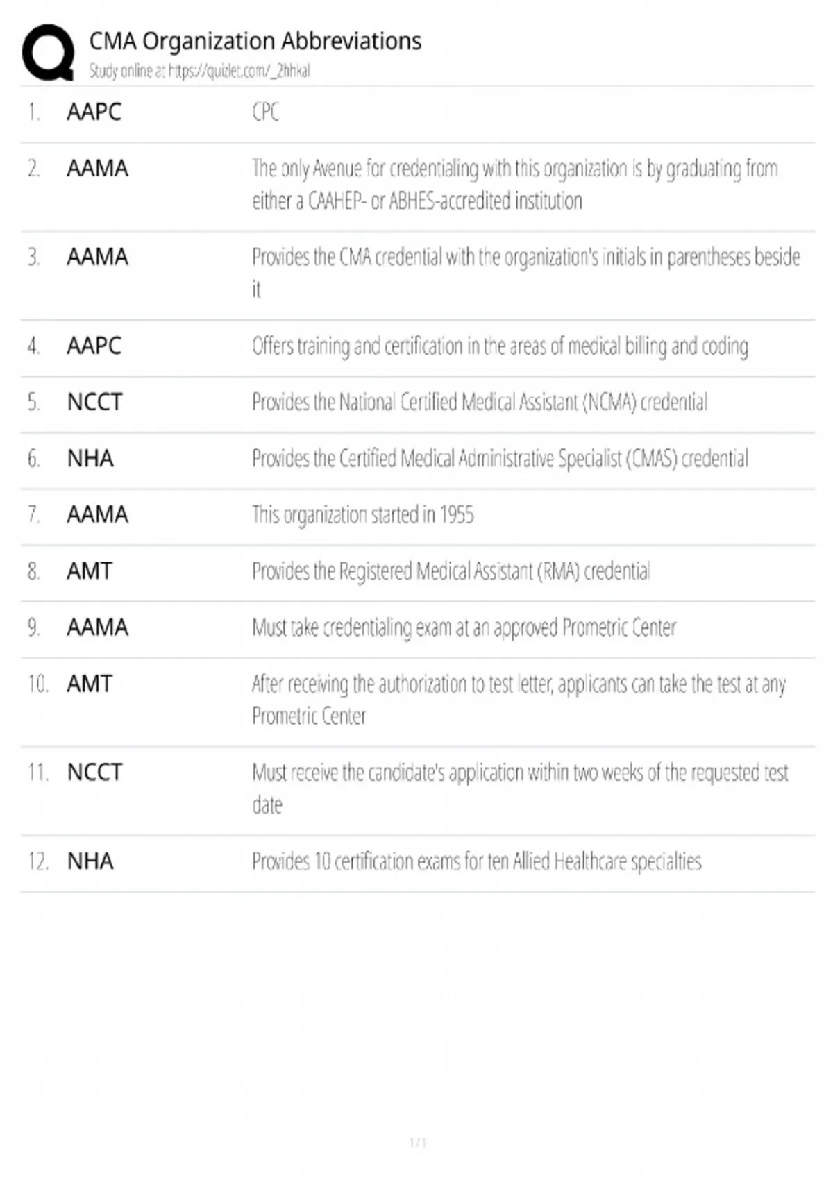 CMA Organization Abbreviations / Master List / Study Guide / 2025 Update / Score 100%
