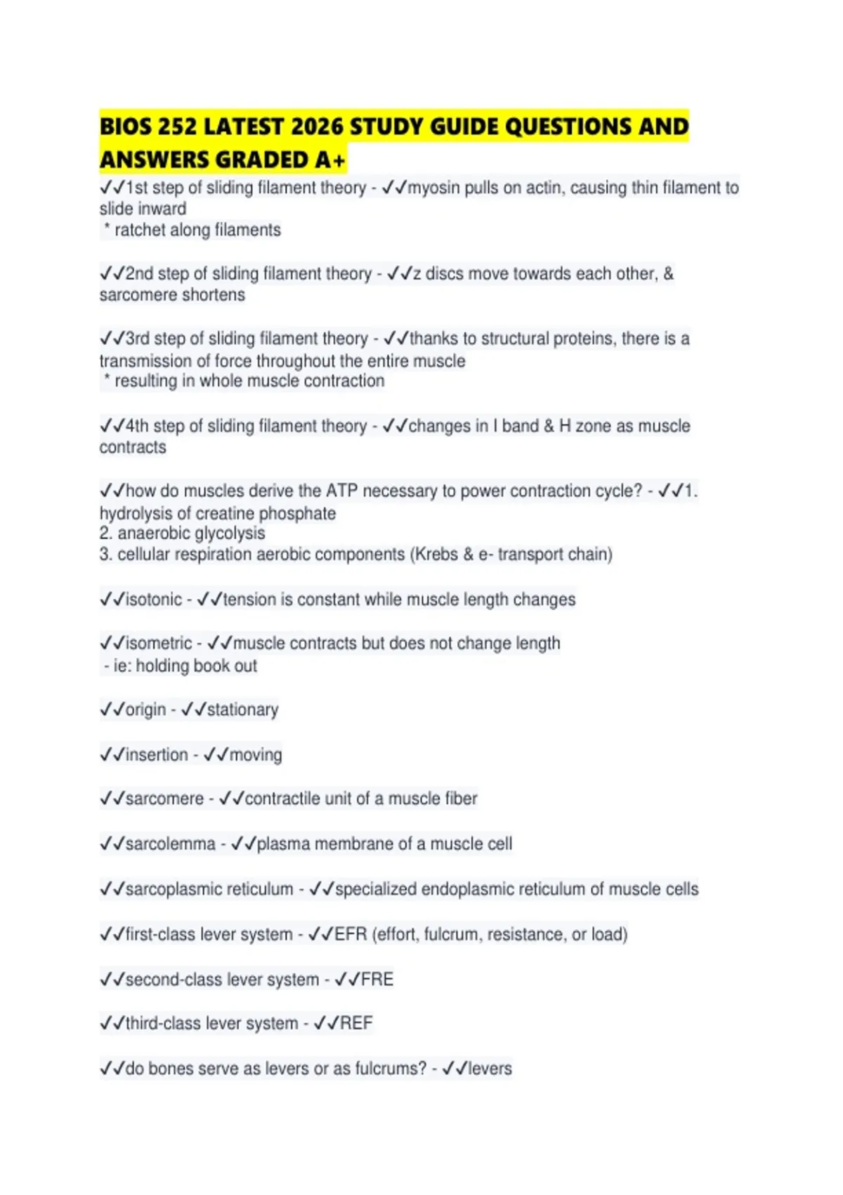 BIOS 252 LATEST 2026 STUDY GUIDE QUESTIONS AND ANSWERS GRADED A+