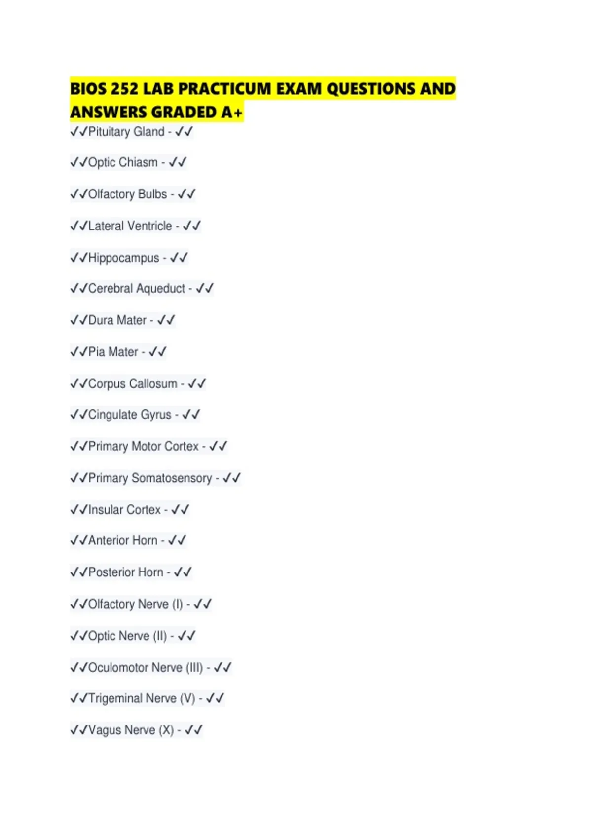 BIOS 252 LAB PRACTICUM EXAM QUESTIONS AND ANSWERS GRADED A+