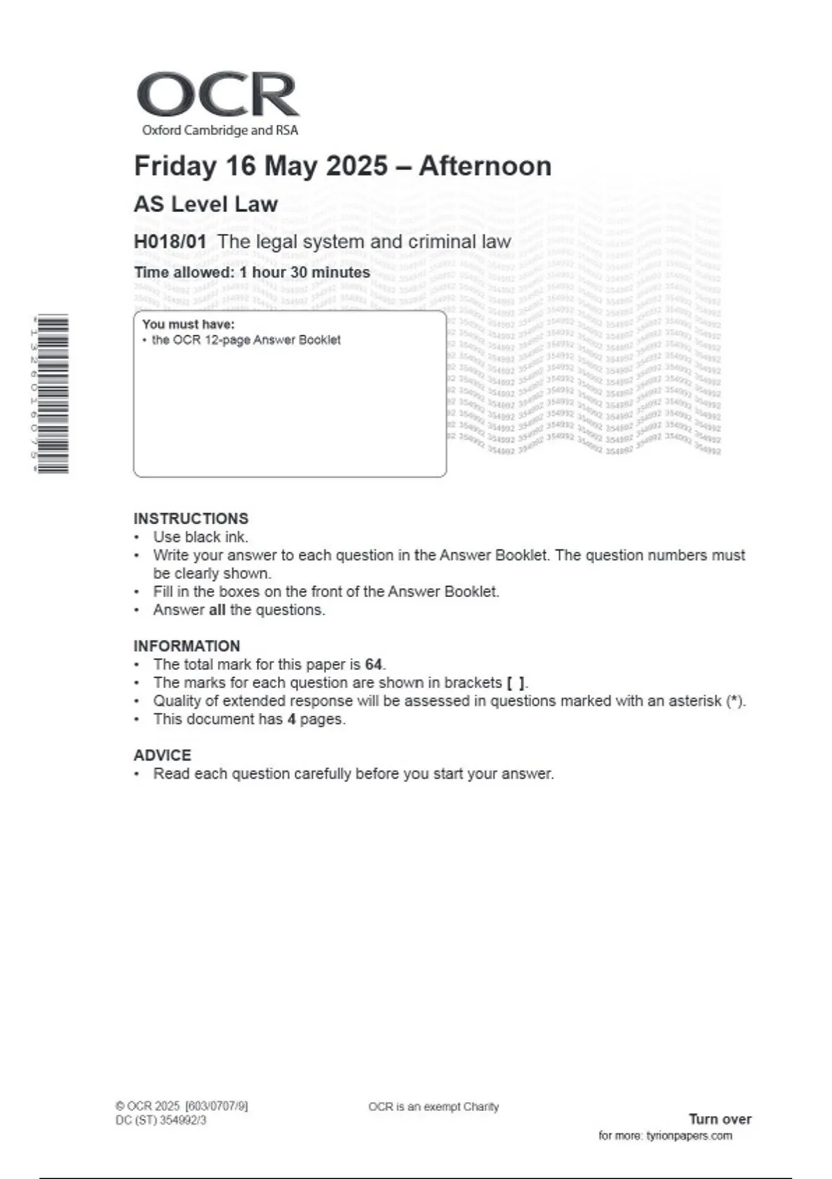 2025 OCR AS LEVEL LAW |H018_01)|question paper |June 2025