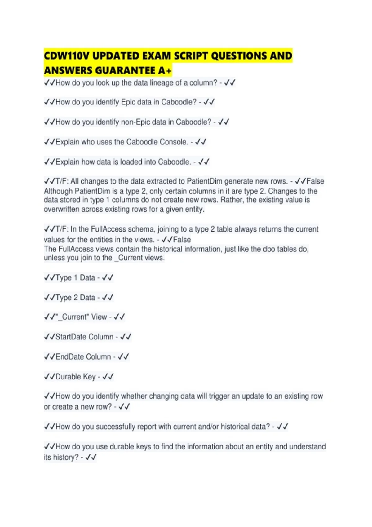 CDW110V UPDATED EXAM SCRIPT QUESTIONS AND ANSWERS GUARANTEE A+