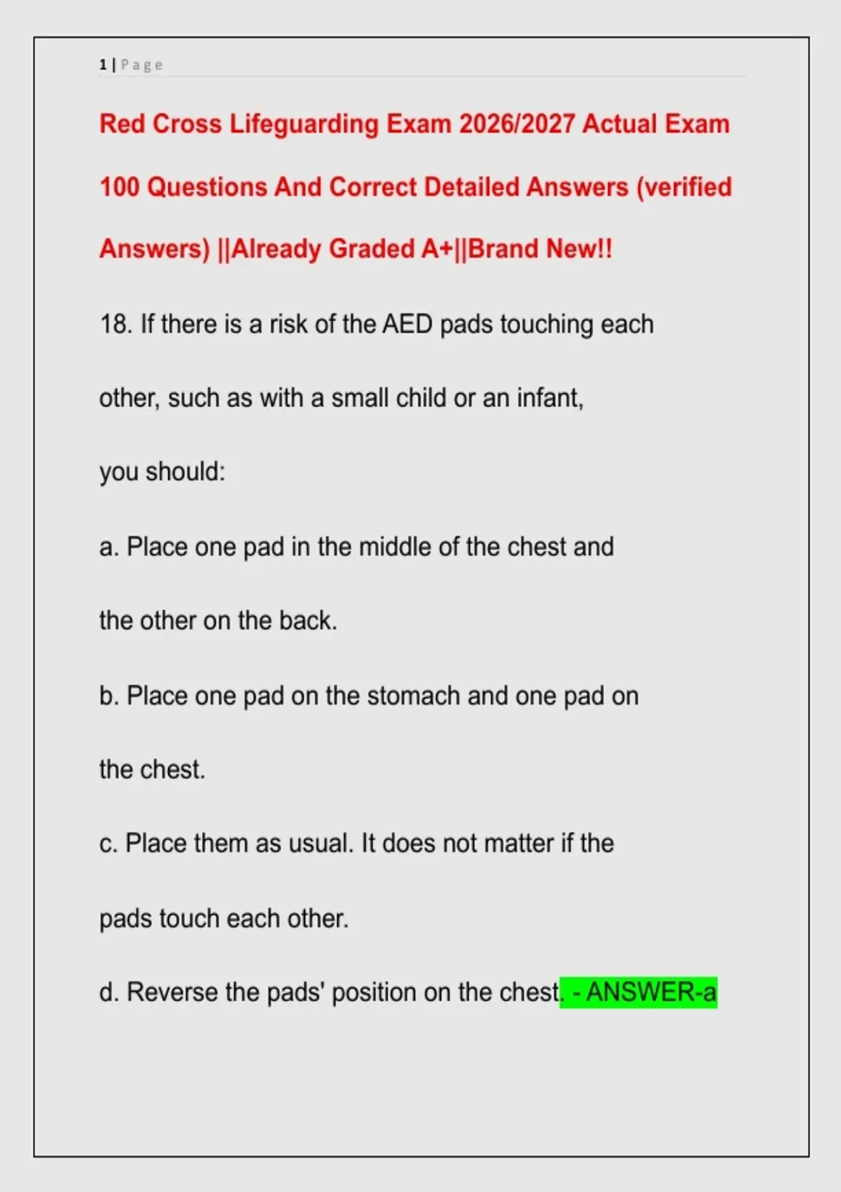 Red Cross Lifeguarding Exam 2026/2027 Actual Exam