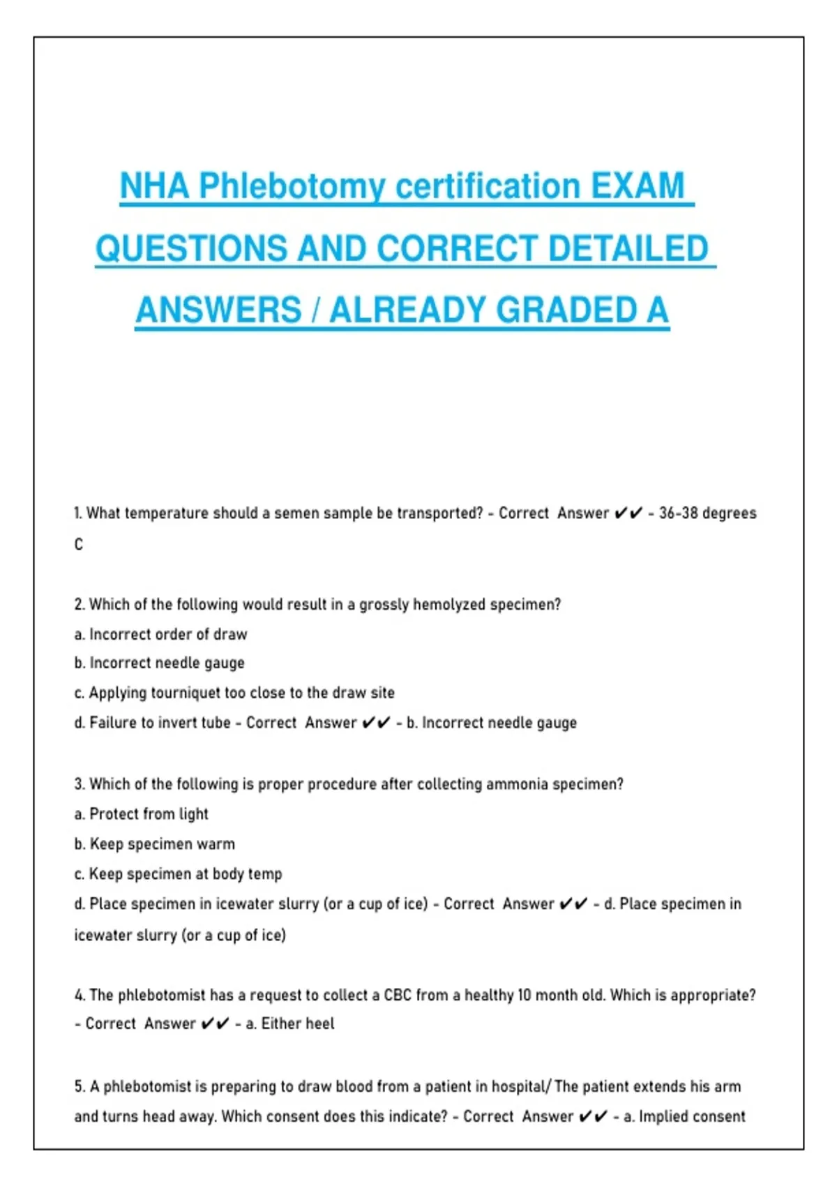 ,6. Why should phlebotomist document volume of blood drawn from a patient? - Correct Answer ✔✔