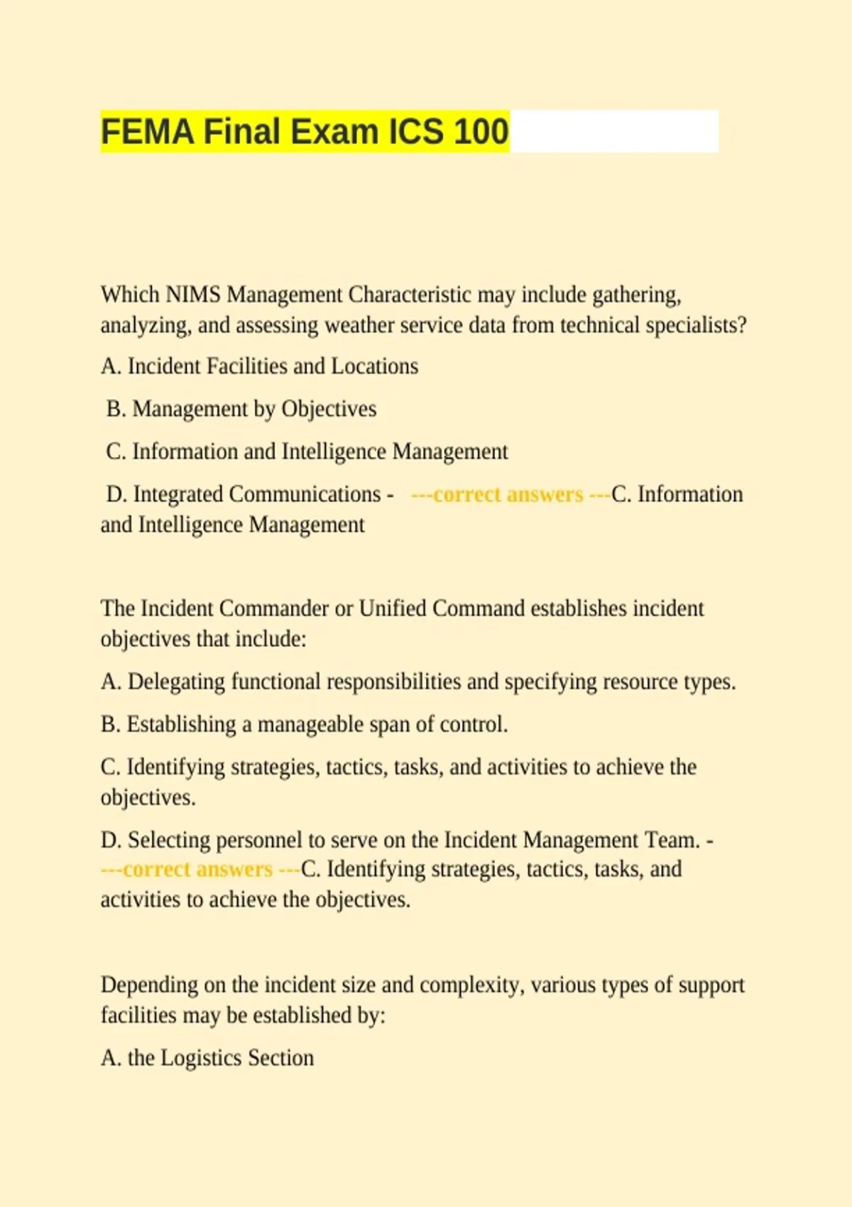 FEMA ICS 100c: Introduction to the Incident Command System, ICS CORRECT VERIFIED ANSWERS