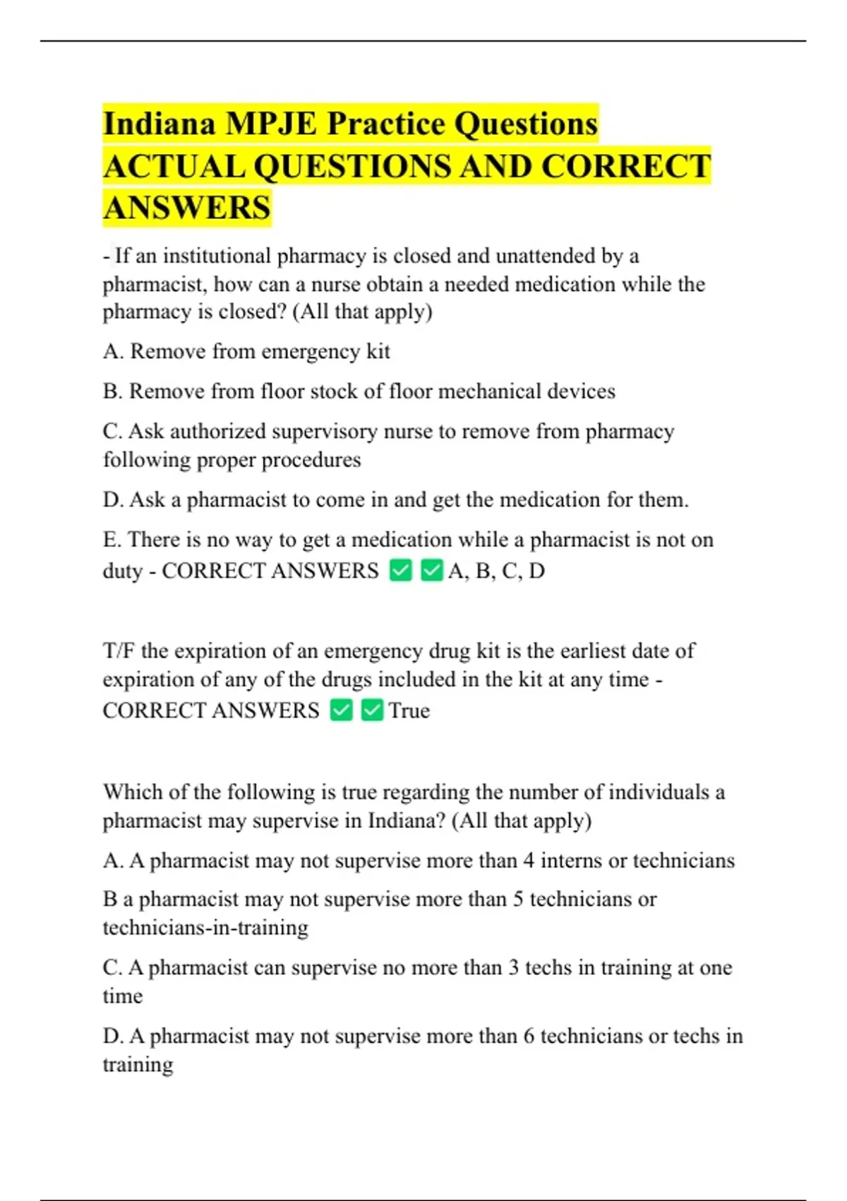 Indiana MPJE Practice Questions UPDATED Study Guide QUESTIONS AND CORRECT ANSWERS
