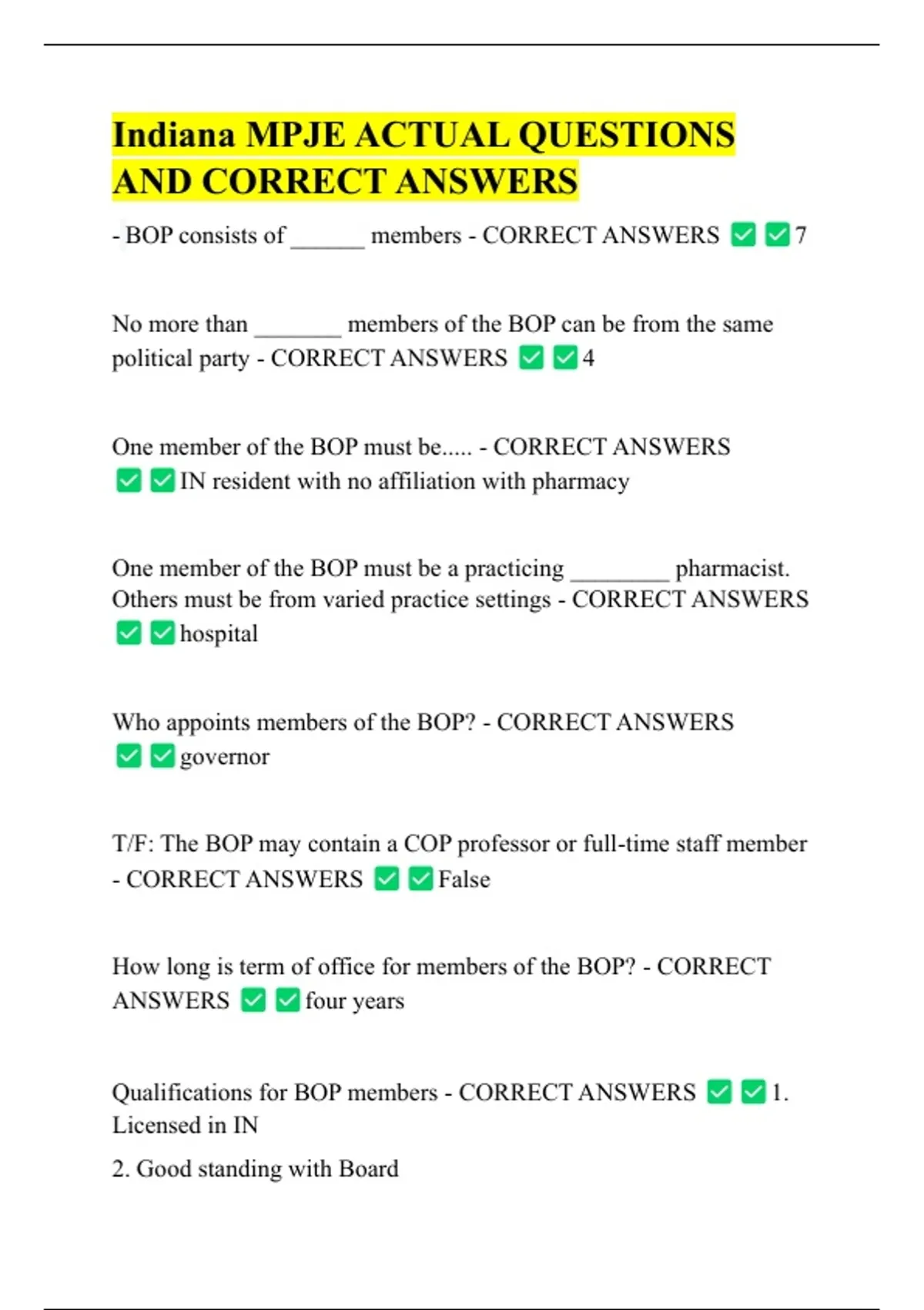 Qualifications for BOP members - CORRECT ANSWERS 1.