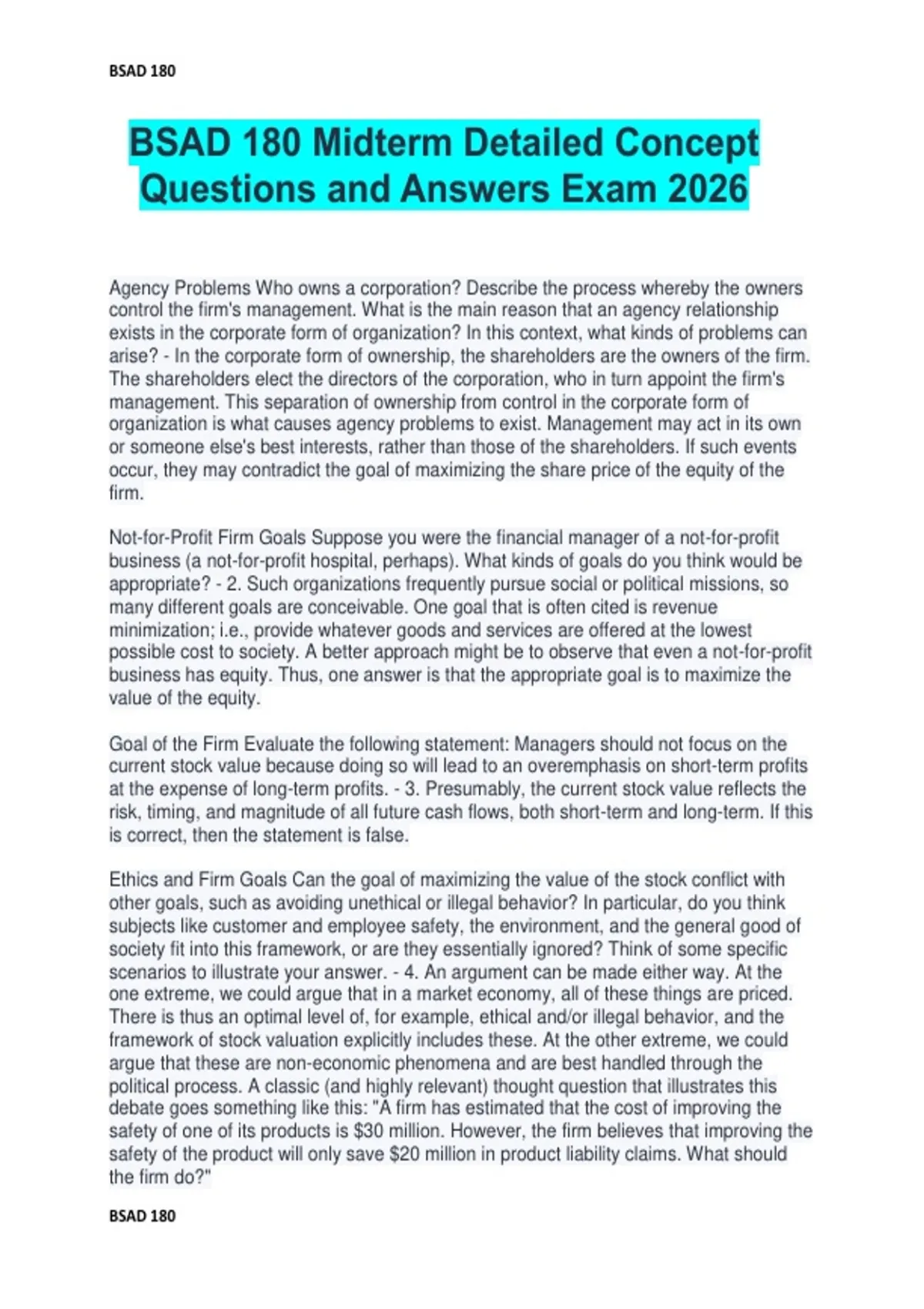 shareholders' best interests? Why or why not? - 6. The goal of management should be