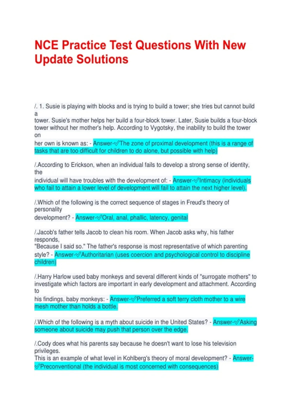 development? - Answer-✅Oral, anal, phallic, latency, genital