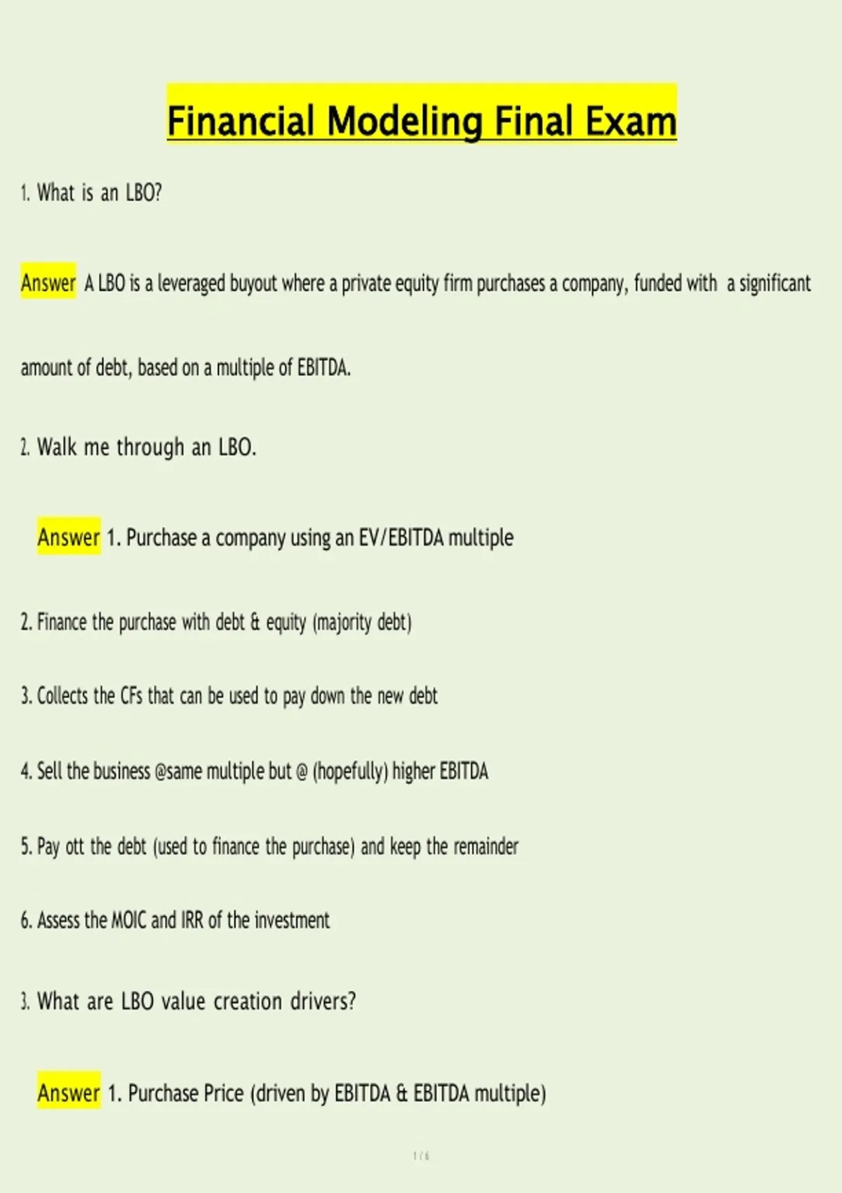 Answer A LBO is a leveraged buyout where a private equity firm purchases a company, funded with a significant