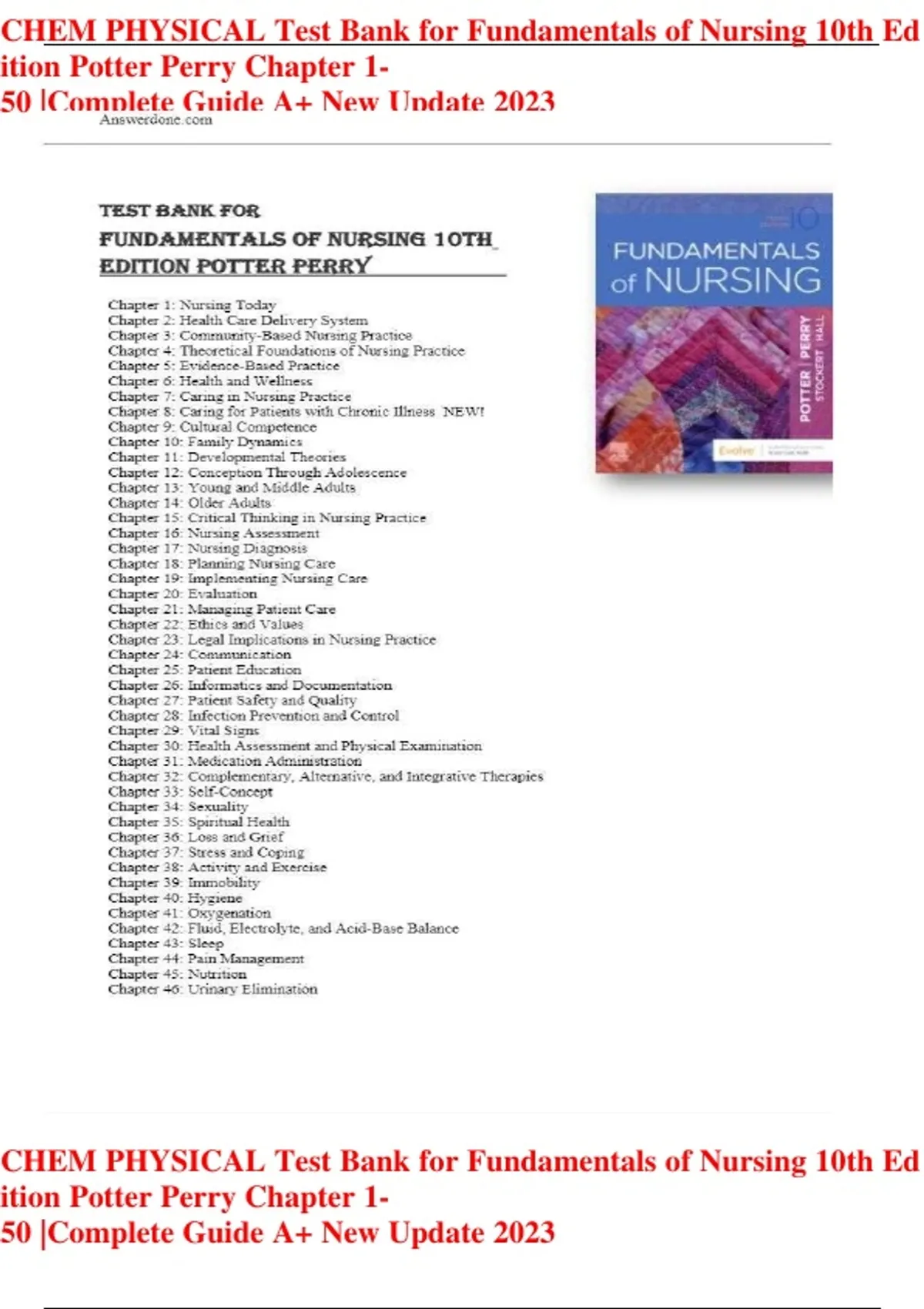 ,CHEM PHYSICAL Test Bank for Fundamentals of Nursing 10th Ed