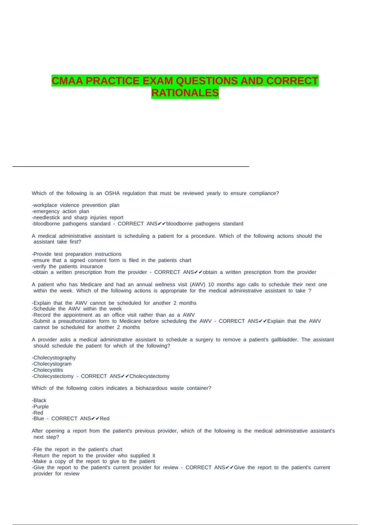 CMAA PRACTICE EXAM QUESTIONS AND CORRECT RATIONALES