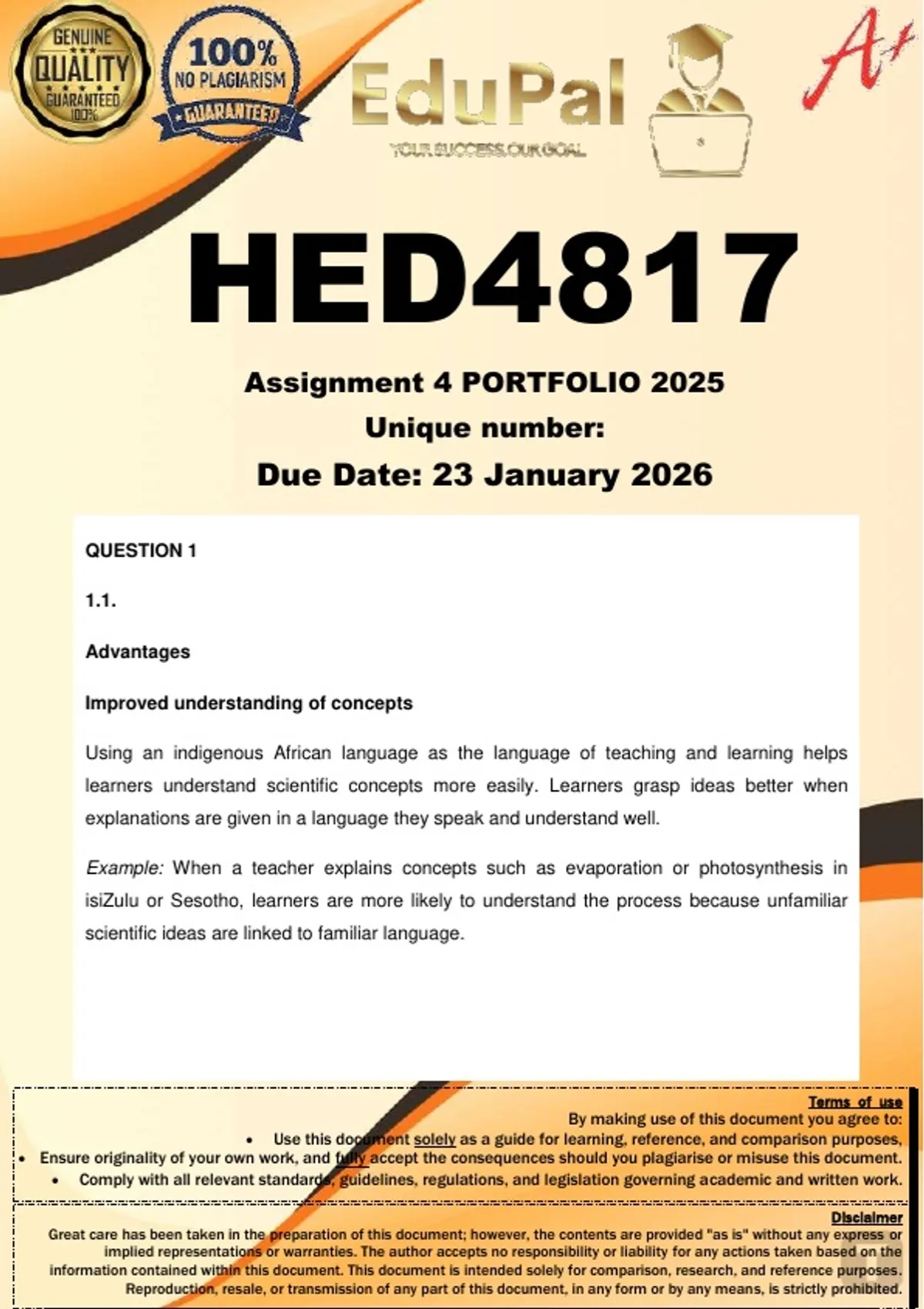 HED4817 Assignment 4 Portfolio (COMPLETE ANSWERS) 2025 - DUE 23 January 2026