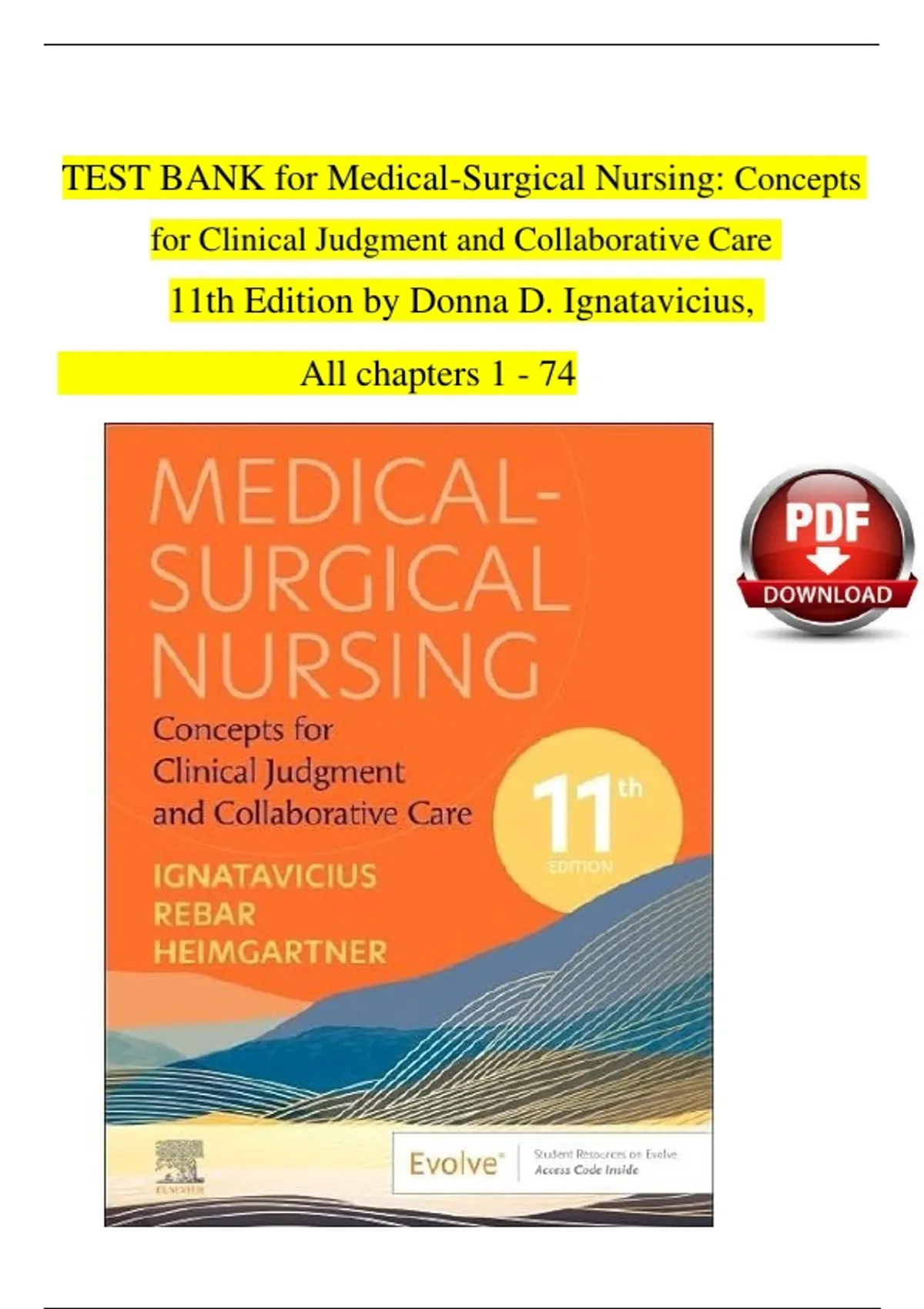 TEST BANK FOR Medical-Surgical Nursing: Concepts for Clinical Judgment and Collaborative Care 11th edition by Donna D. Ignatavicius ISBN: 978-0323878265 COMPLETE GUIDE WITH RATIONALES 100% VERIFIED A+ GRADE ASSURED!!!!NEW LATEST UPDATE!!!!!!