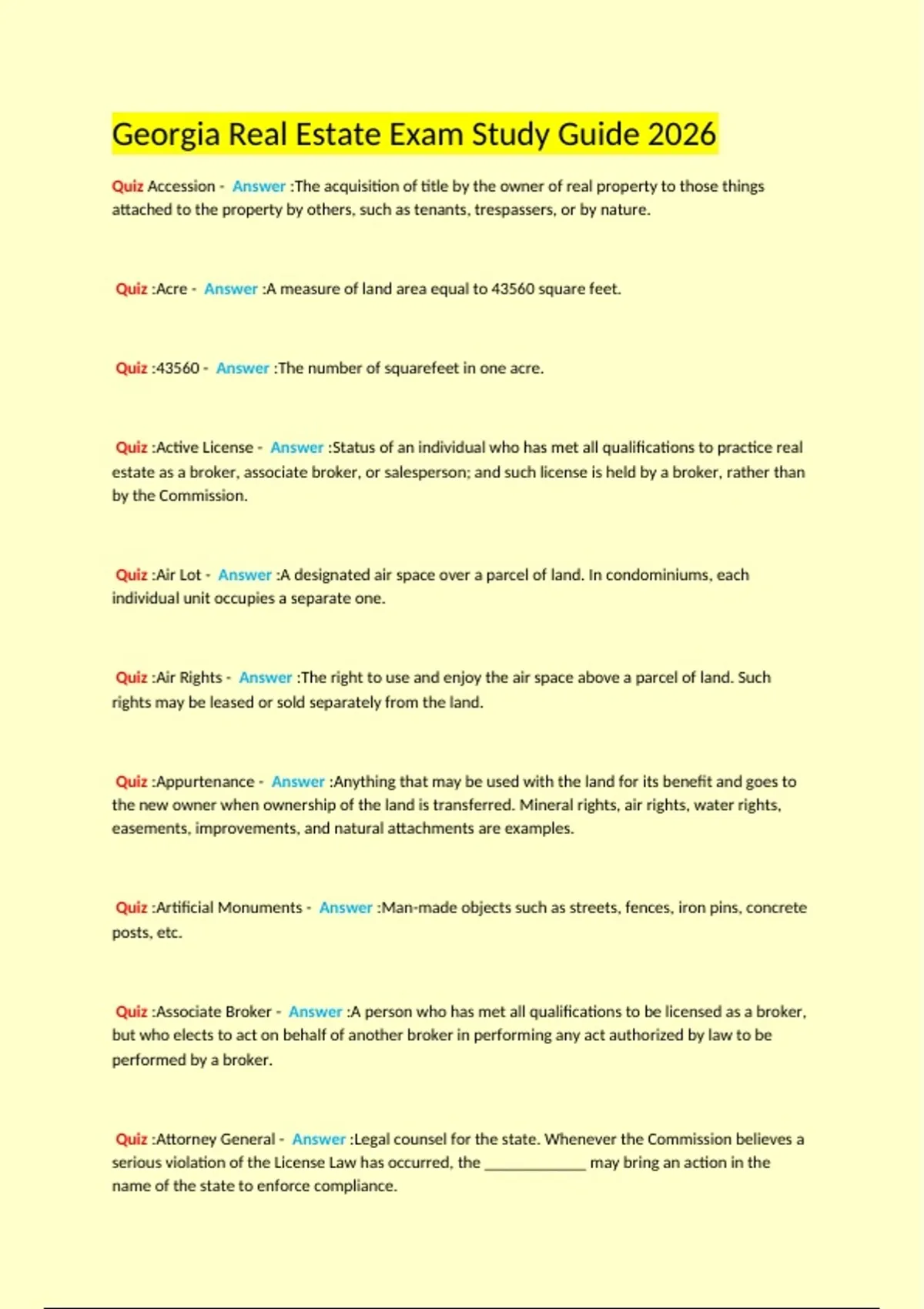 Quiz Accession - Answer :The acquisition of title by the owner of real property to those things