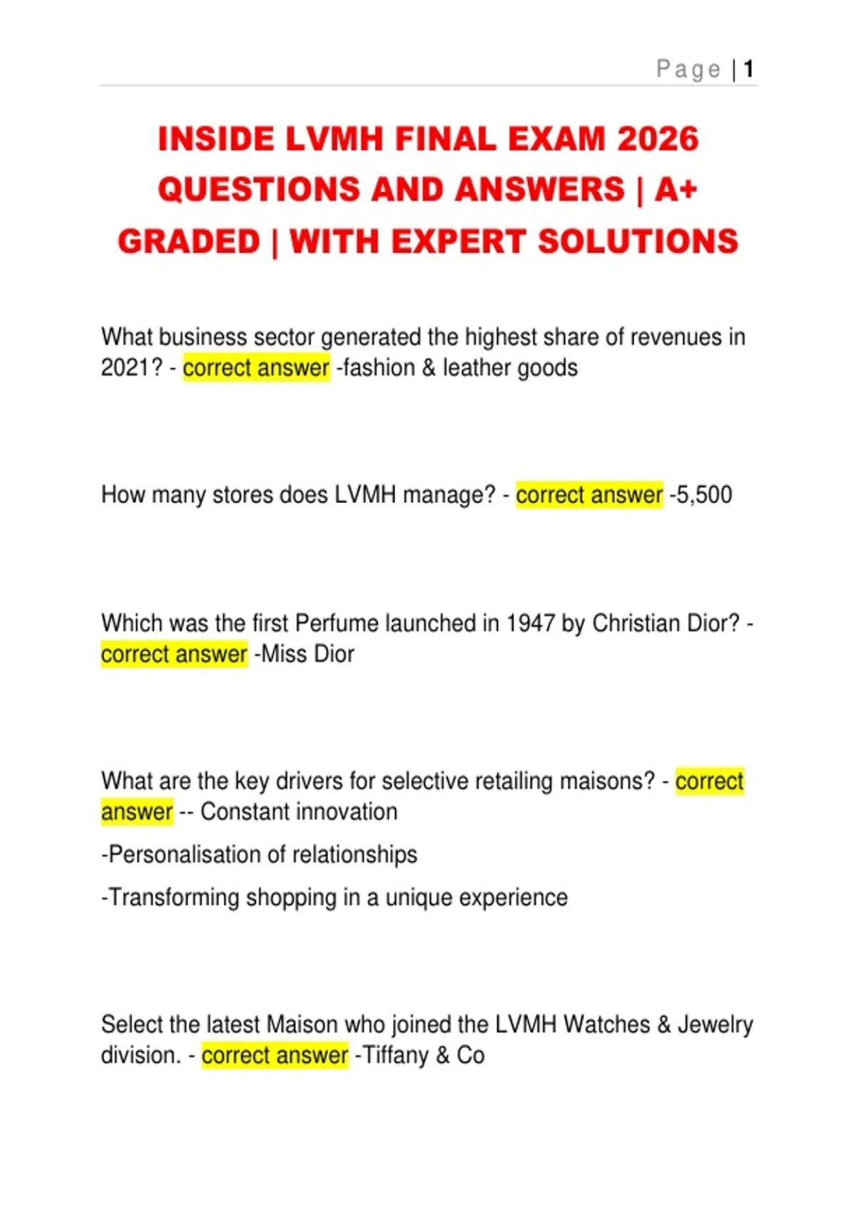 INSIDE LVMH FINAL EXAM 2026 QUESTIONS AND ANSWERS | A+ GRADED | WITH EXPERT SOLUTIONS