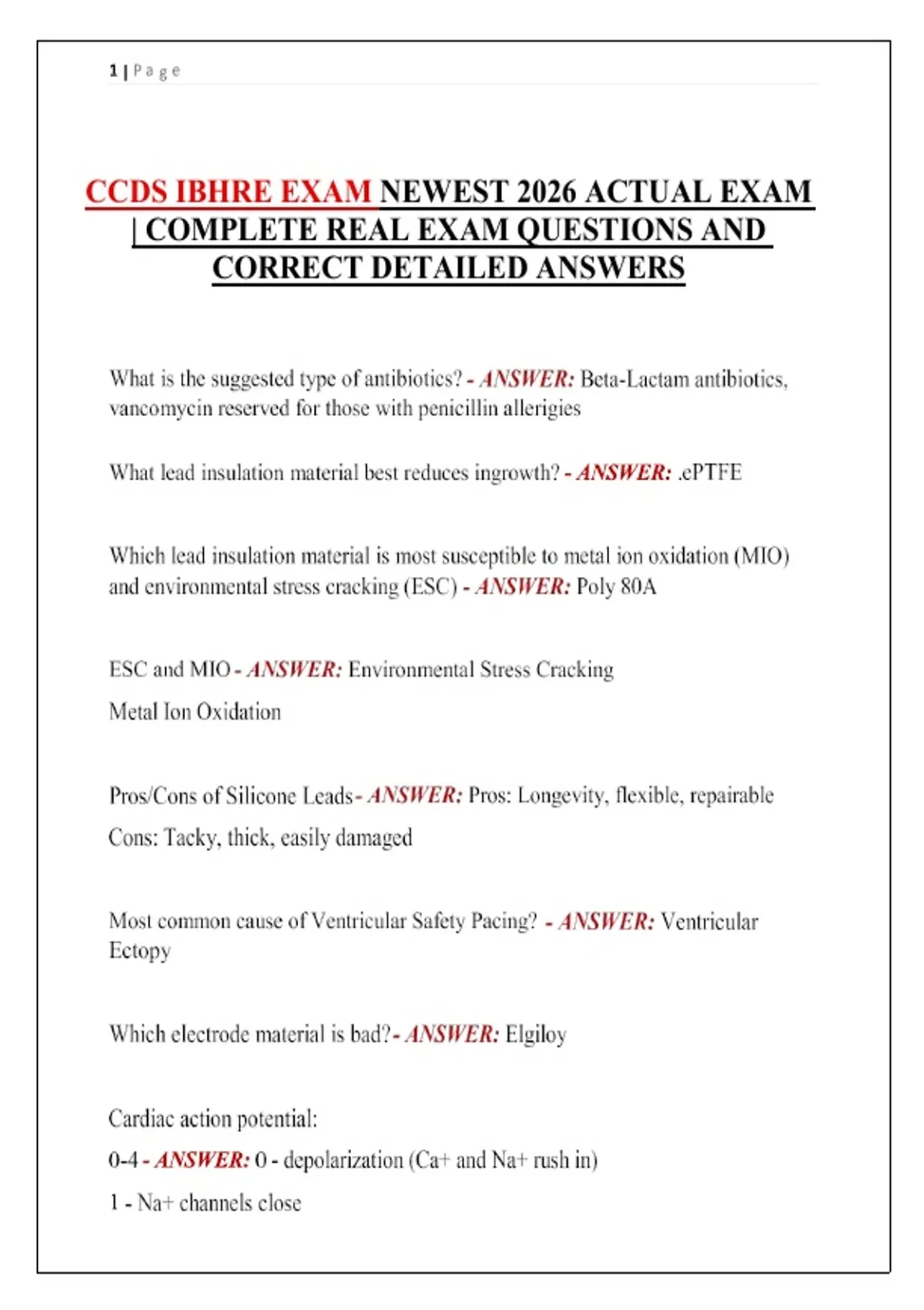 This document provides a focused CCDS practice exam designed to support preparation for the IBHRE Cardiac Device Specialist certification. It includes exam-style questions covering cardiac implantable electronic devices, rhythm interpretation, device function, troubleshooting, and clinical decision-making relevant to CCDS candidates. The material is suitable for self-assessment and targeted review in the final stages of exam preparation.