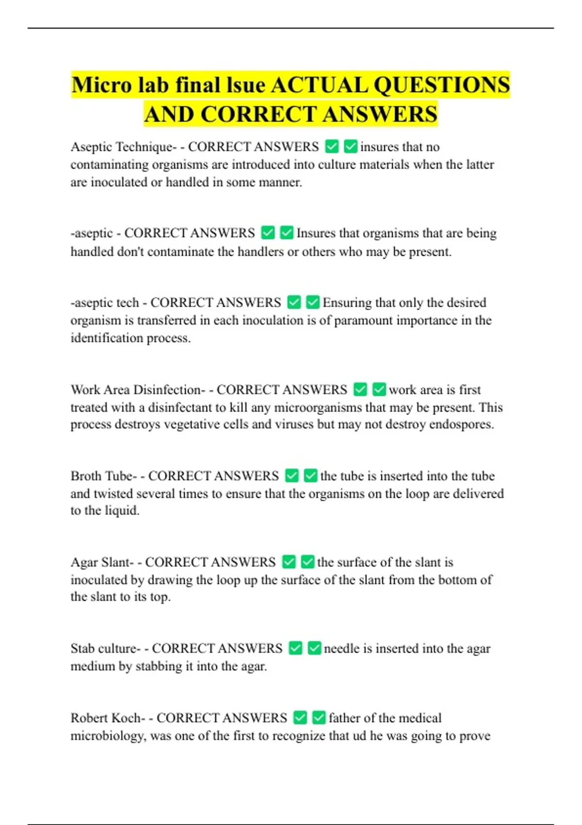 Micro lab final lsue ACTUAL QUESTIONS