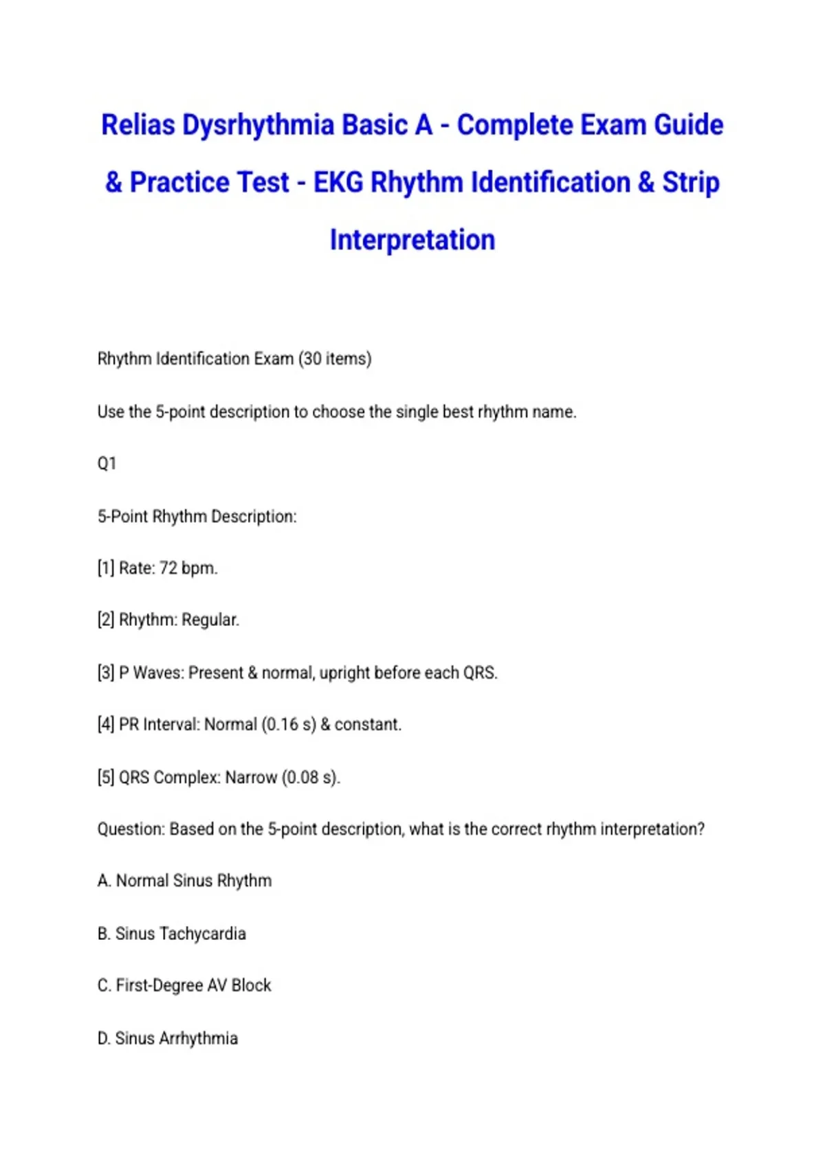 Relias Dysrhythmia Basic A - Complete Exam Guide & Practice Test - EKG Rhythm Identification & Strip Interpretation
