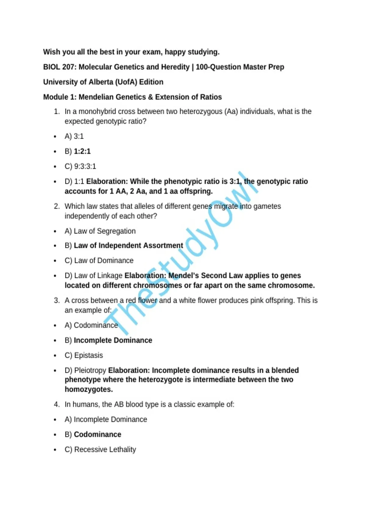 BIOL 207: Molecular Genetics and Heredity | 100-Question Master Prep