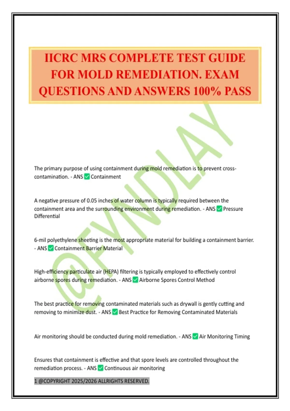IICRC MRS COMPLETE TEST GUIDE FOR MOLD REMEDIATION. EXAM QUESTIONS AND ANSWERS 100% PASS