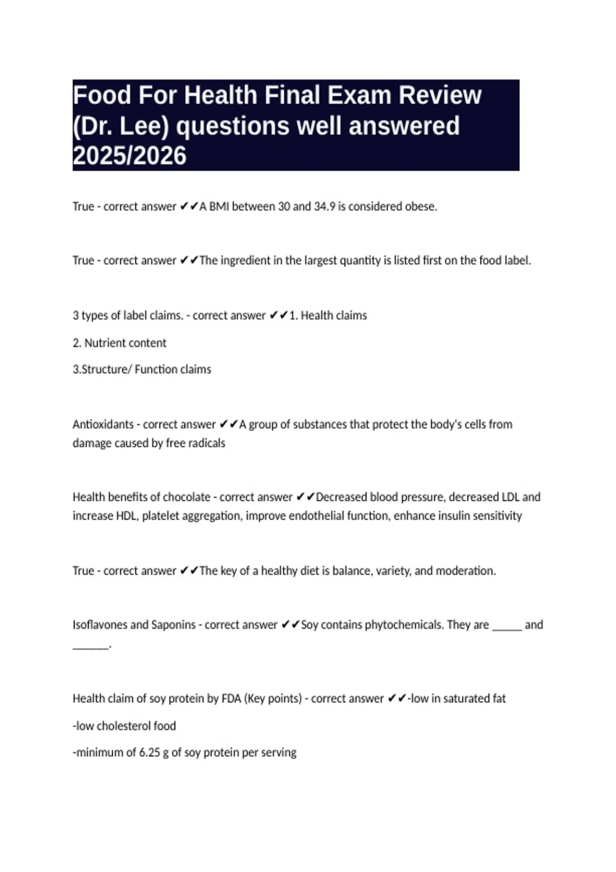 Health benefits of chocolate - correct answer ✔✔Decreased blood pressure, decreased LDL and
