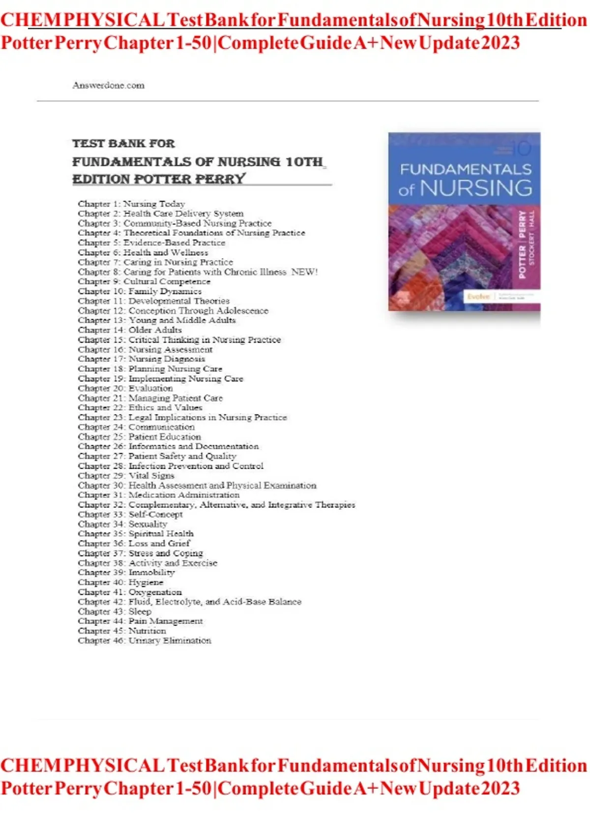 ,CHEM PHYSICAL Test Bank for Fundamentals of Nursing 10th Edition
