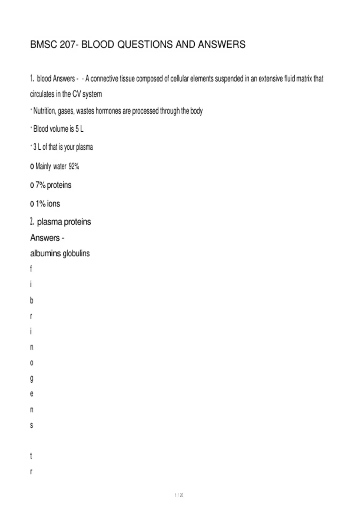 4. · globulins (multiple types) Answers - o clotting factors, enzymes, antibodies, carriers for various
