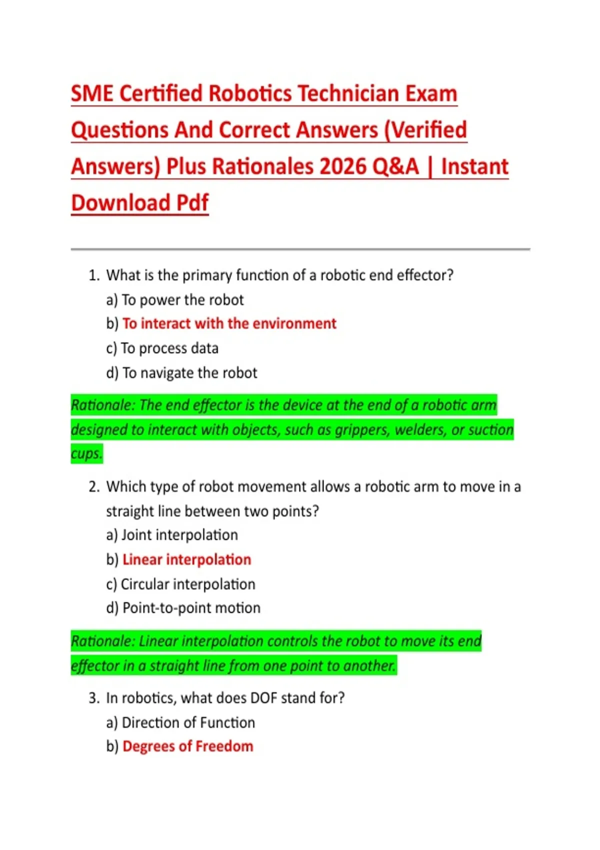 3. In robotics, what does DOF stand for?