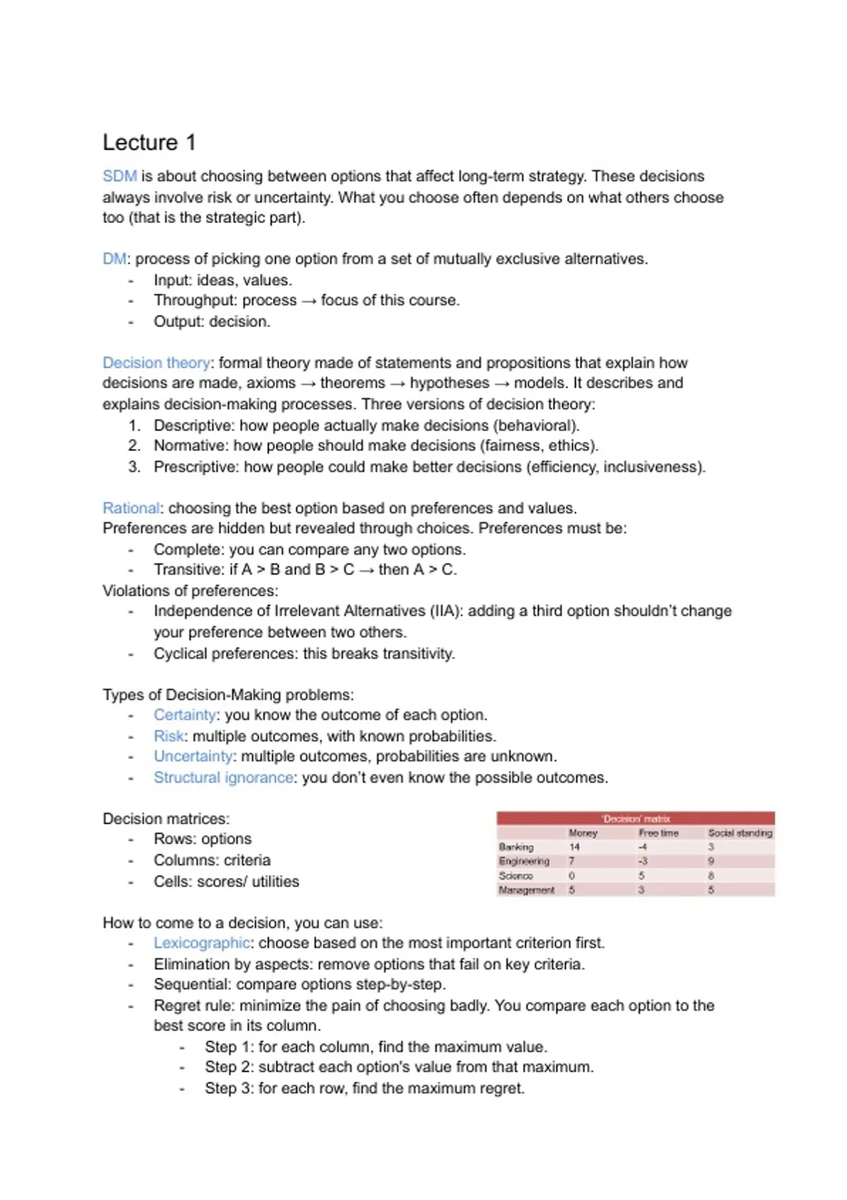 Strategic Decision Making Lecture Summary