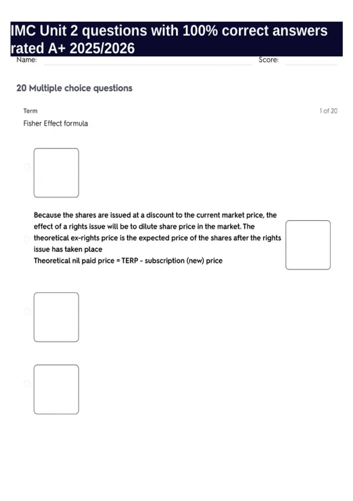 imc unit 2 questions with 100 correct answers rat