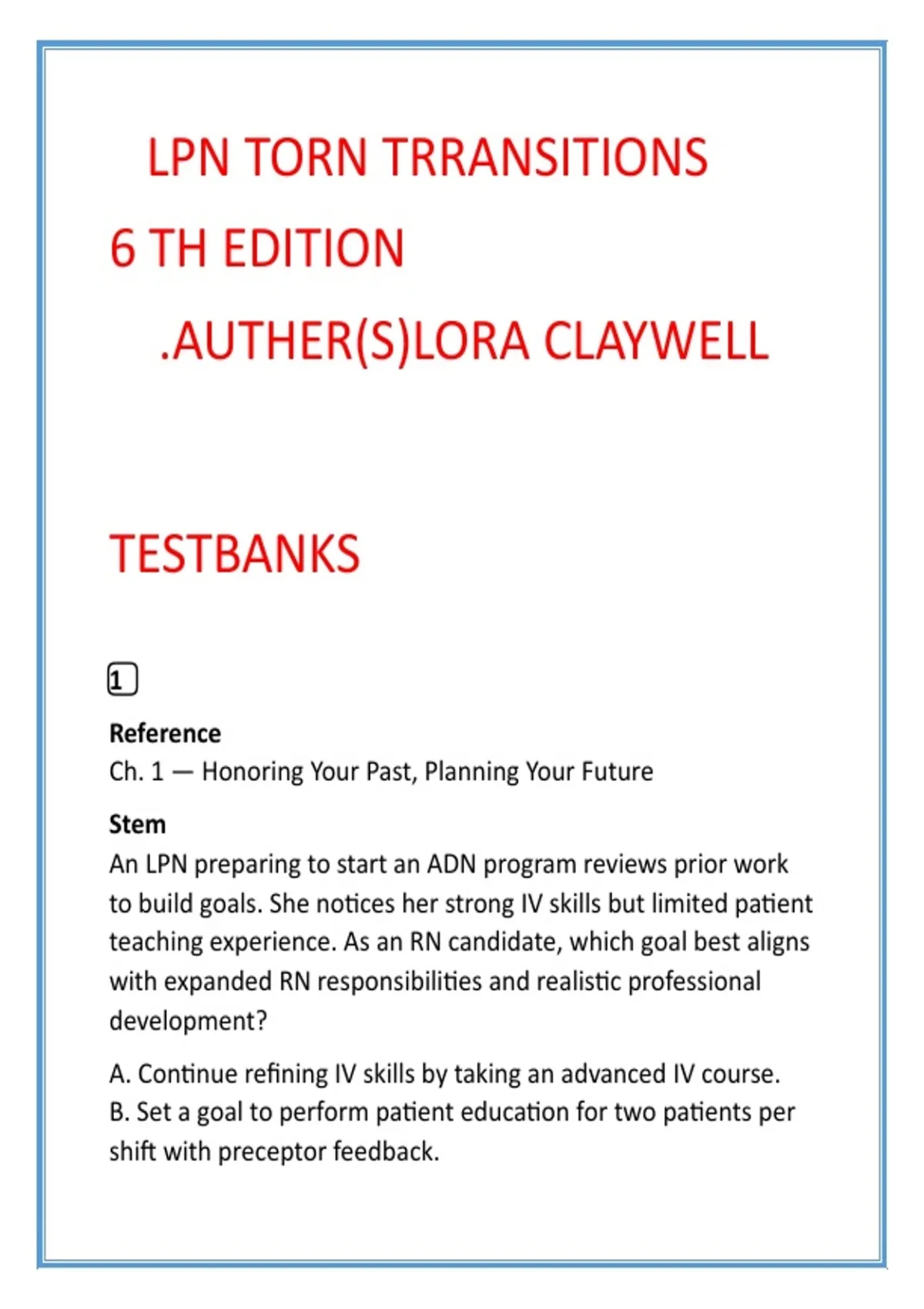 Claywell, L. (2025). LPN to RN Transitions (6th ed.). Ch. 1.