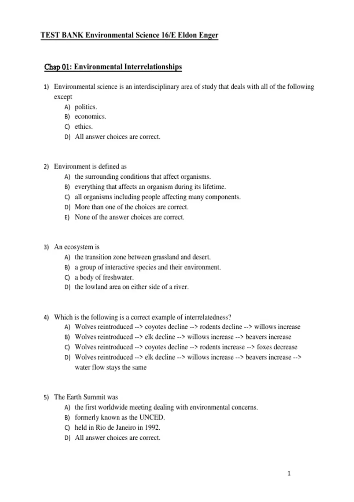 Chap 01: Environmental Interrelationships