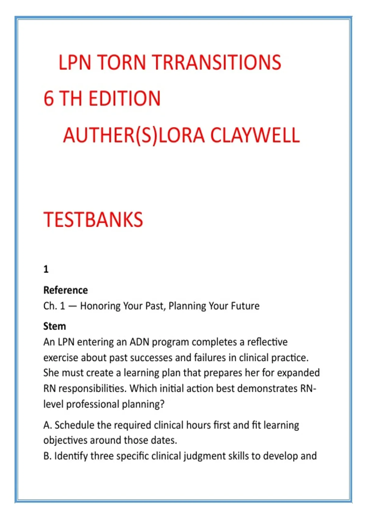 Claywell, L. (2025). LPN to RN Transitions (6th ed.). Ch. 1.