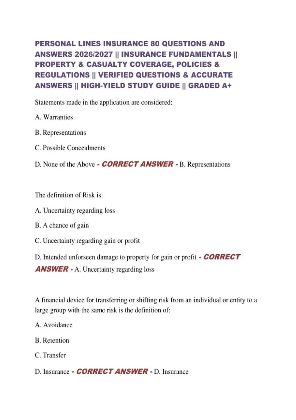 ANSWERS 2026/2027 || INSURANCE FUNDAMENTALS ||