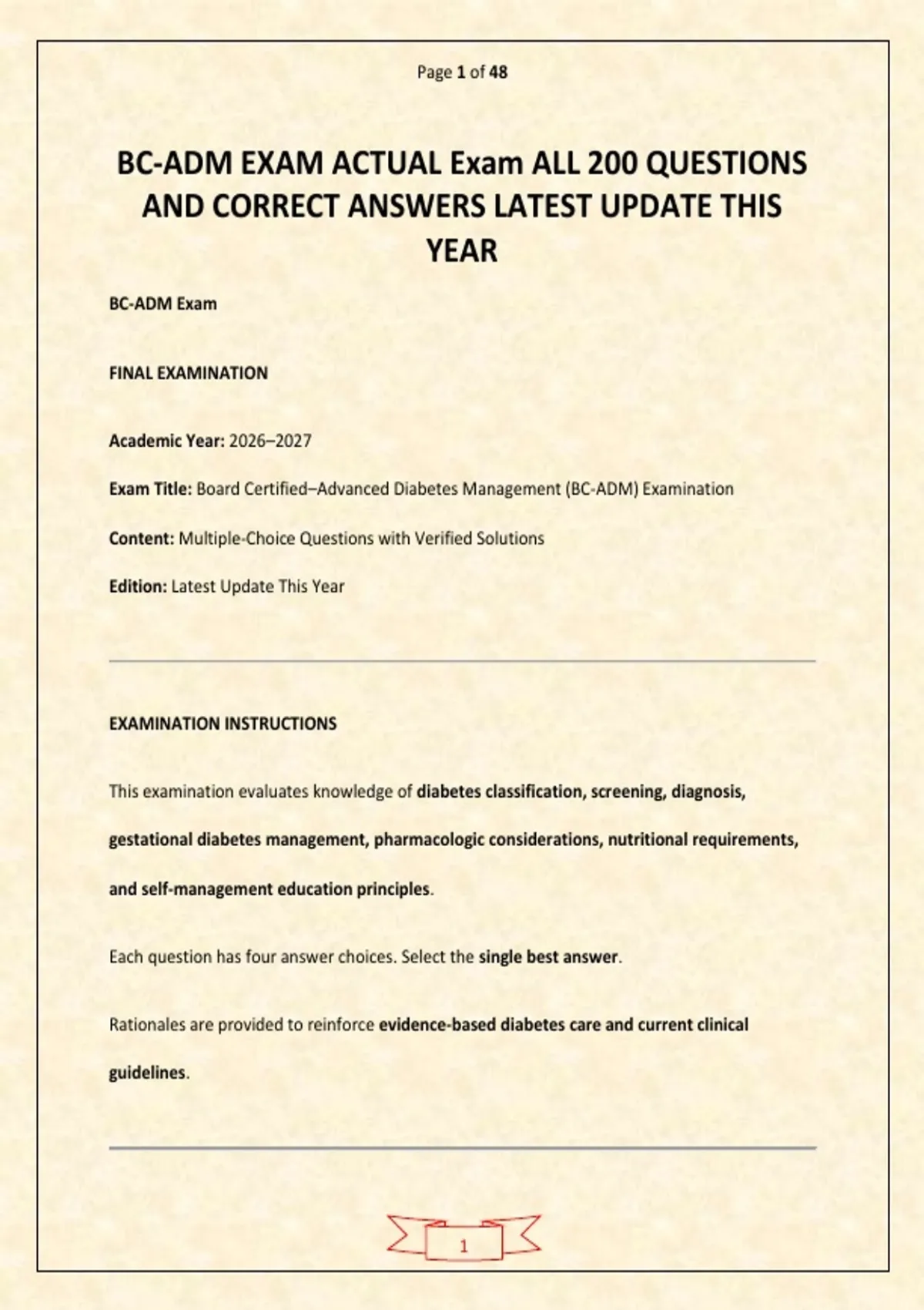 Tap on AVAILABLE IN BUNDLE / PACKAGE DEAL to unlock free bonus exams — save more while getting everything you need! You’ll be glad you did! The BC-ADM Exam Actual provides a fully updated and comprehensive study resource designed to help candidates master the Board Certified-Advanced Diabetes Management (BC-ADM) examination. This complete guide covers all essential topics, including advanced diabetes pathophysiology, patient assessment and management, pharmacologic and non-pharmacologic interventions, clinical decision-making, care planning, monitoring and evaluation, and scenario-based problem-solving. The full set of 200 questions comes with verified correct answers to reinforce understanding, enhance retention, and build confidence for exam day. Ideal for diabetes care specialists, advanced practice nurses, nurse practitioners, and healthcare professionals preparing for the BC-ADM Exam, this resource ensures thorough review, practical application, and reliable exam readiness.