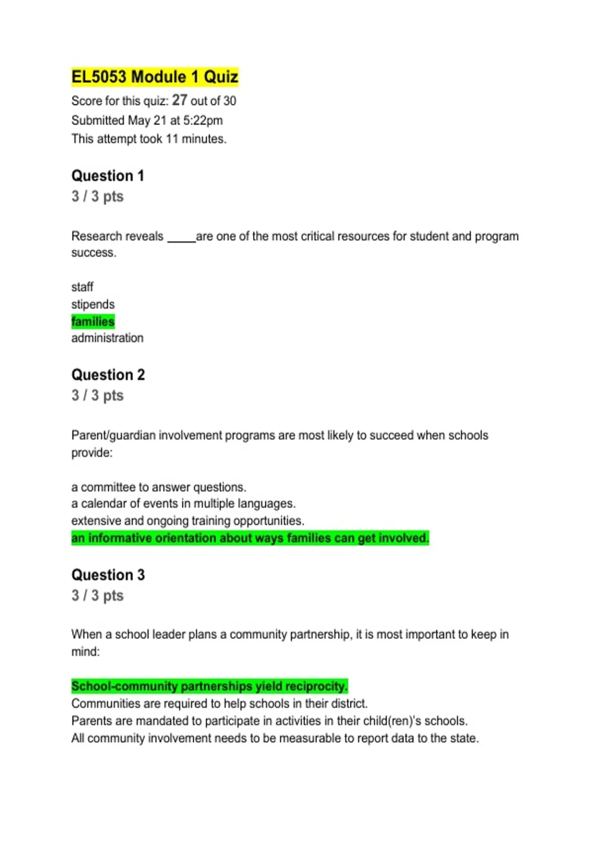 Score for this quiz: 27 out of 30