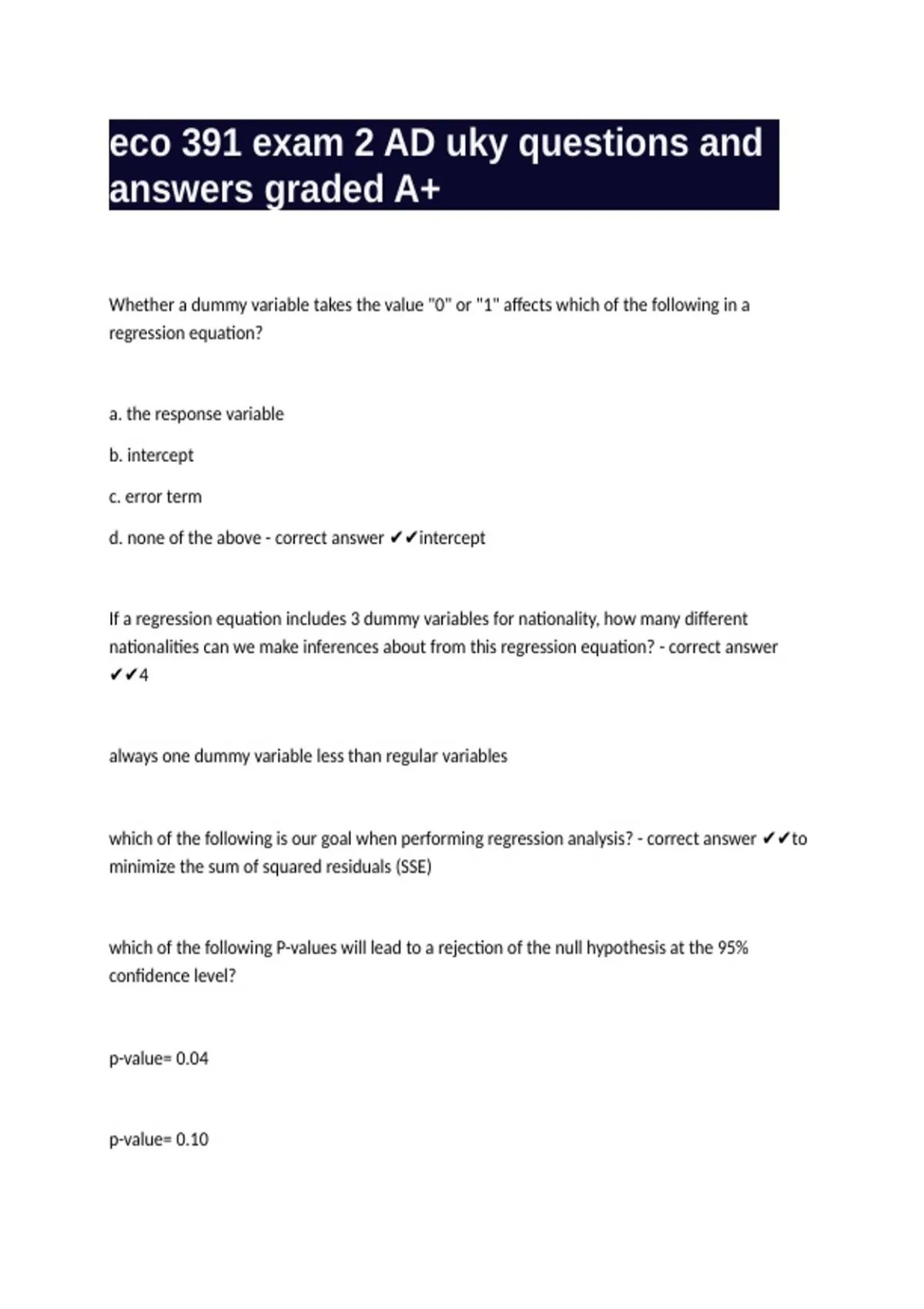 d. none of the above - correct answer ✔✔intercept