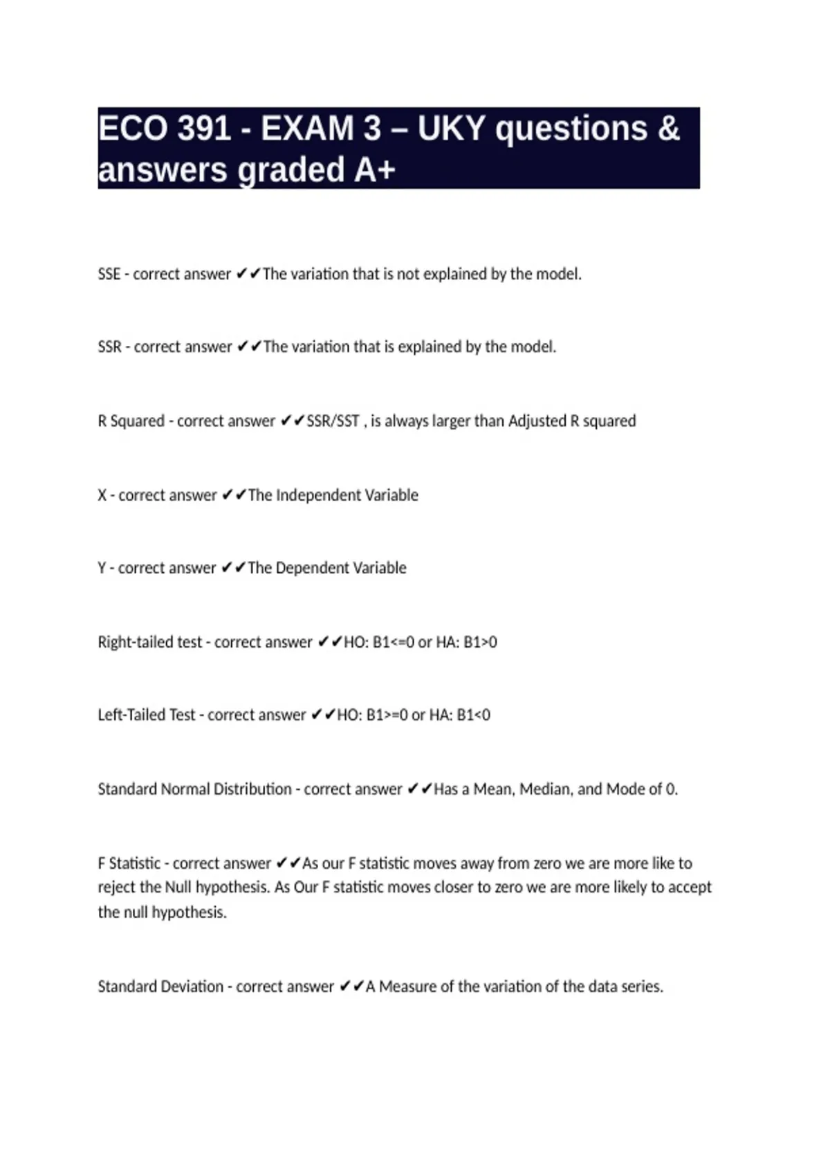 ECO 391 - EXAM 3 – UKY questions &